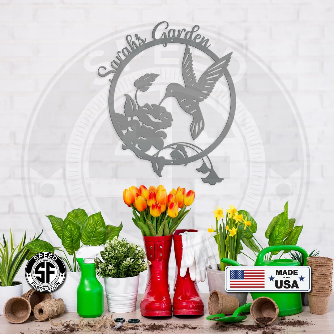This Personalized Hummingbird Garden Metal Sign is the perfect sign for your lawn or garden. Sizing is for the height of the sign, measuring from the top of the words to the bottom of the flowers. Our 12″ through 28″ signs are made from 16 gauge steel, 30″ through 36″ signs are made from 14 gauge steel with a powder coated finish for a long lasting sign indoors or outdoors.
