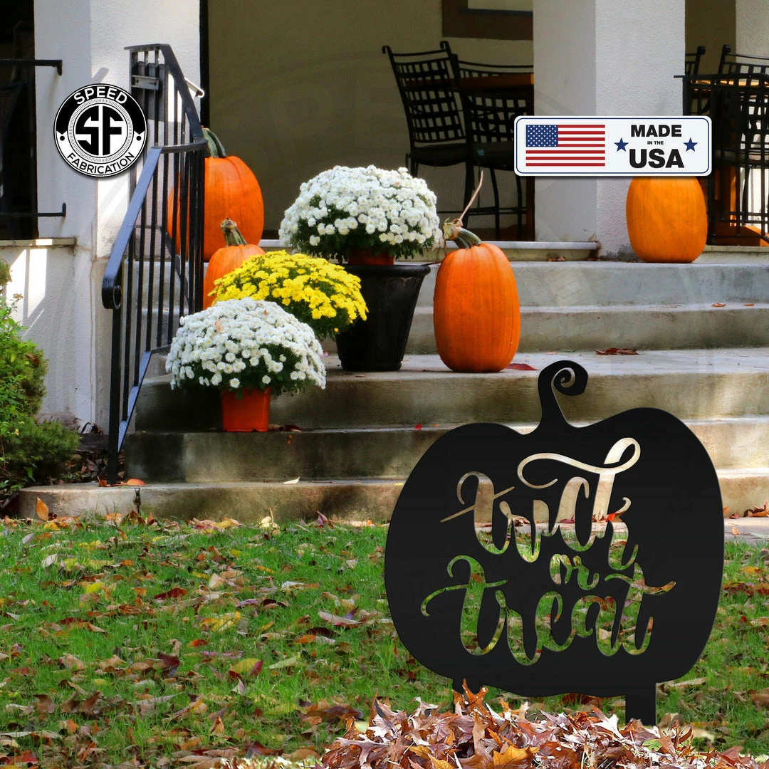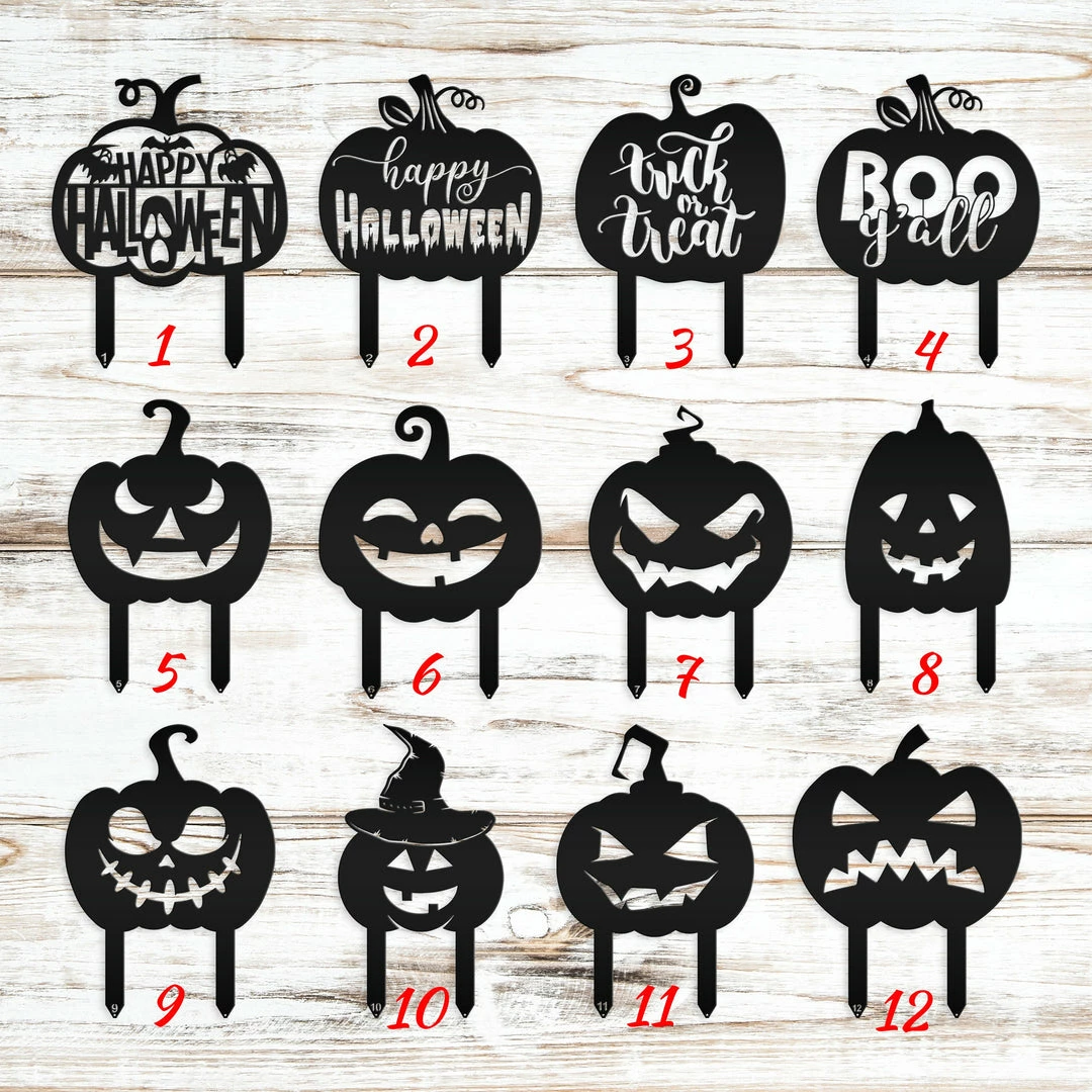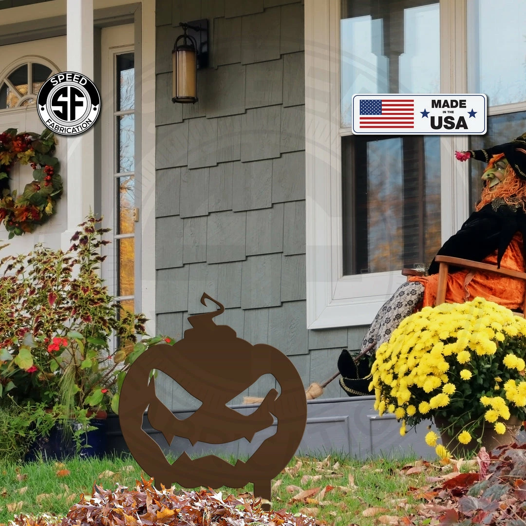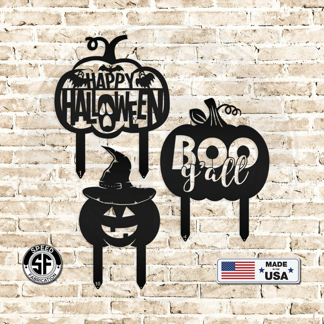 Our Assorted Halloween Pumpkin Metal Yard Stakes are the perfect way to decorate your lawn and home for Halloween. We offer an assortment of 12 different pumpkins for you to choose from. Sizes range from 13″ – 18.5″ wide and 23″ tall including the stake. Please refer to the numbered pumpkin picture and place the number of your choice in the personalization section. If there aren’t any numbers given, we will send you the quantity of pumpkins you have chosen starting chronologically. Our pumpkin yard stakes are made from 14 gauge steel with a powder coated finish for a long lasting sign indoors or outdoors.