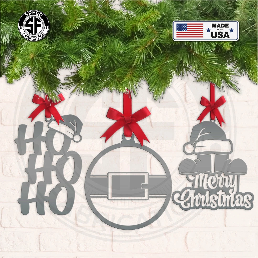 Our Santa Claus themed metal Christmas Ornaments are the perfect way to deck your halls for the holidays. Available individually or as a set of 3. Made from steel with a powder coated finish or left in a bare metal finish that will rust when exposed to humidity. These ornaments measure 4″ tall and do NOT include a ribbon or cord for hanging.