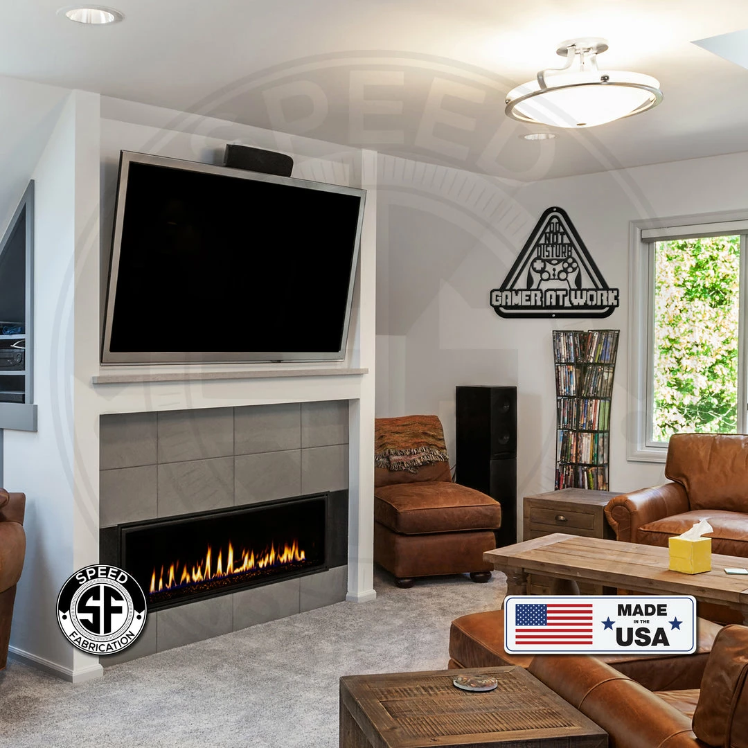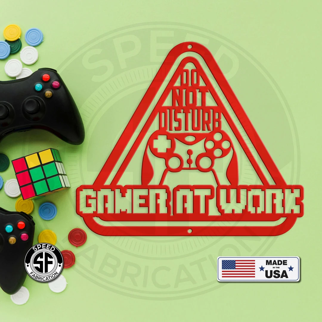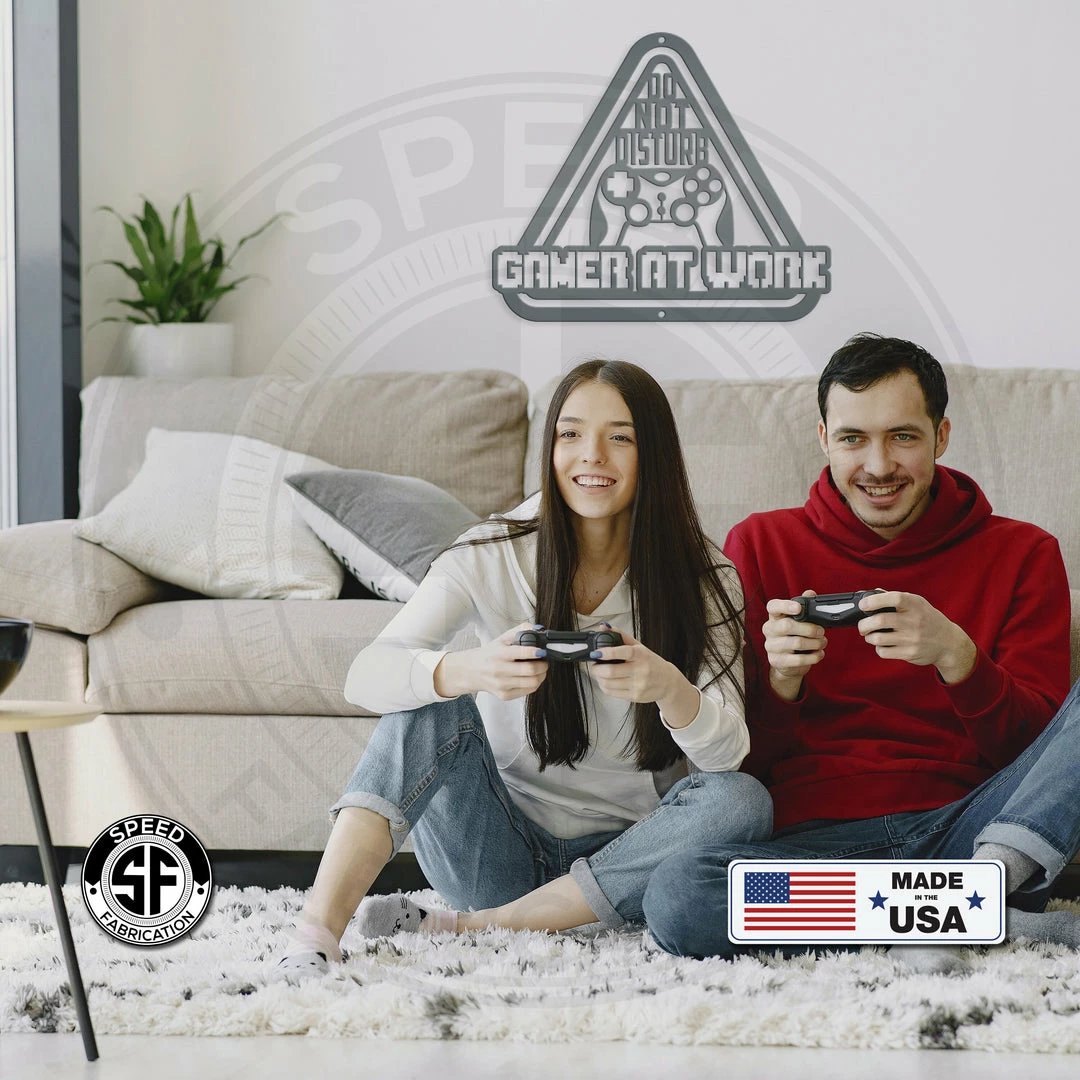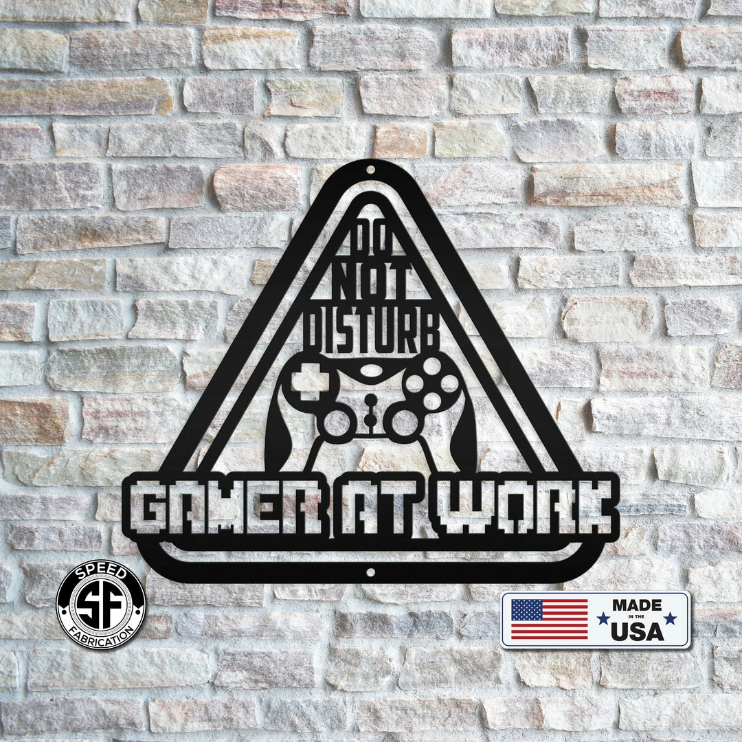 Our Do Not Disturb Gamer At Work Metal Sign is the perfect sign for any family game room. Also makes a great gift for the gamer in your life. Sizing is for the width of the sign. Our 12″ through 28″ signs are made from 16 gauge steel, 30″ through 36″ signs are made from 14 gauge steel with a powder coated finish for a long lasting sign indoors or outdoors.