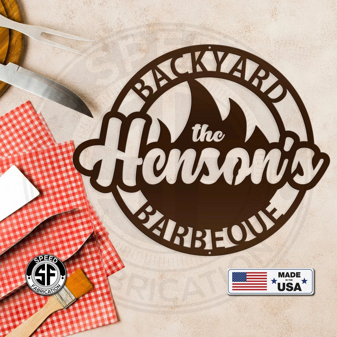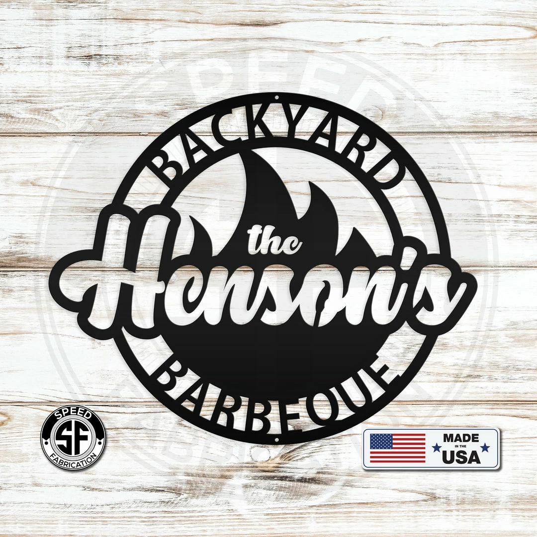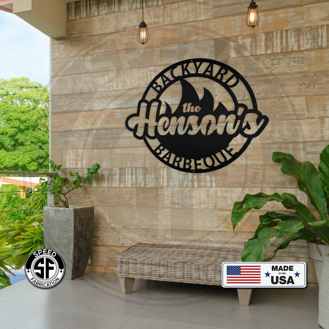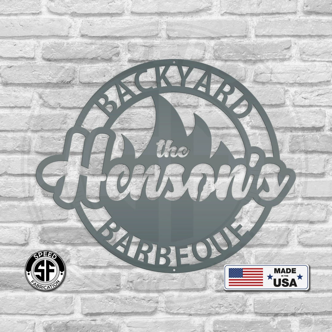 This Personalized Family Name Backyard Barbeque Metal Sign is the perfect decor for your backyard patio. Our 12″ through 28″ signs are made from 16 gauge steel, 30″ through 36″ signs are made from 14 gauge steel with a powder coated finish for a long lasting sign indoors or outdoors.