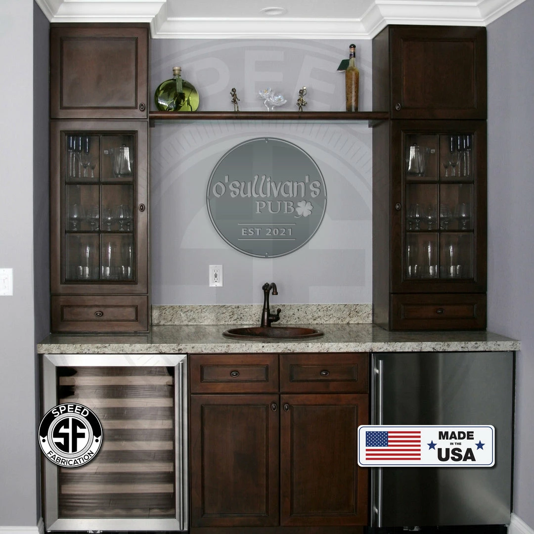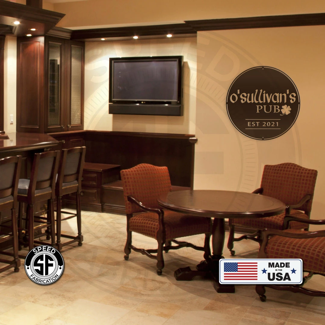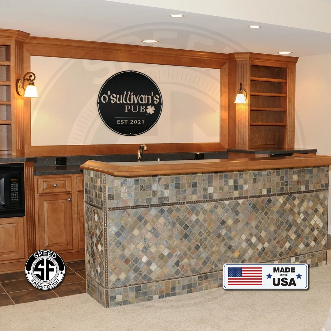 This Personalized Family Pub with Established Date Metal Sign is the perfect décor for your home bar or lounge. Our 12″ through 28″ signs are made from 16 gauge steel, 30″ through 36″ signs are made from 14 gauge steel with a powder coated finish for a long lasting sign indoors or outdoors.