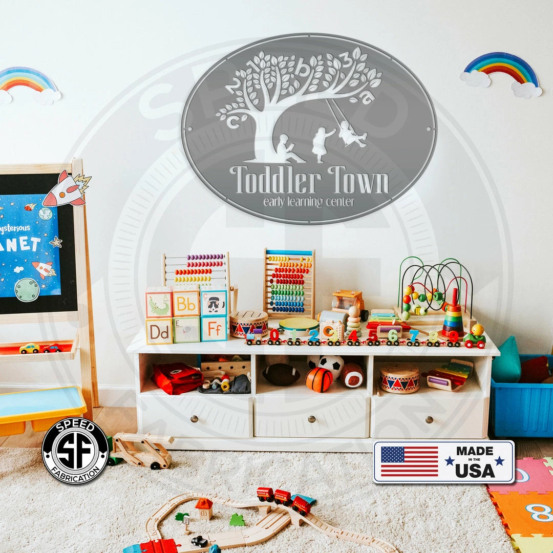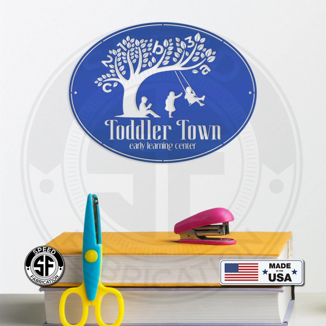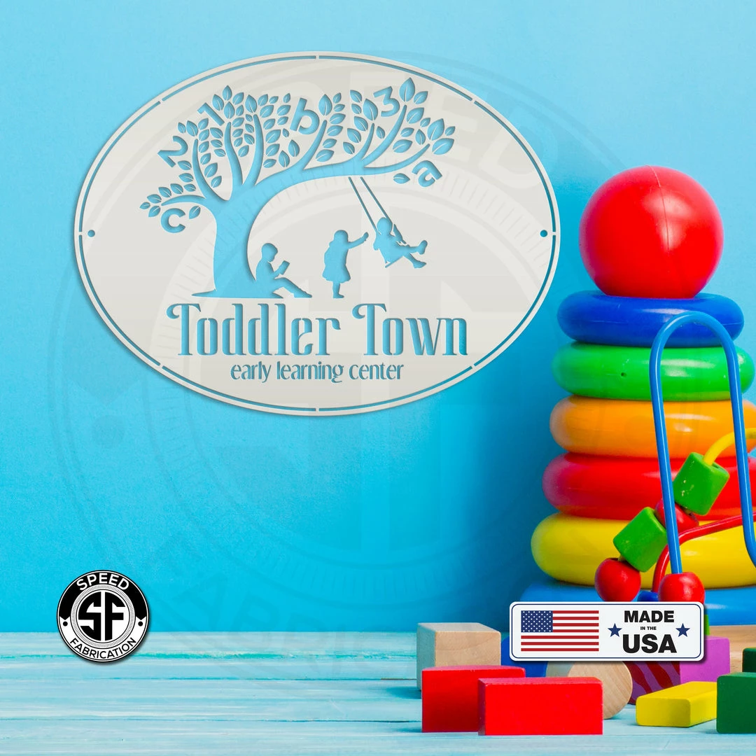This Custom Oval Daycare Business Metal Sign is the perfect sign for your childcare business. Perfect for the at home daycare, or preschool. Sizing is for the width of the sign.