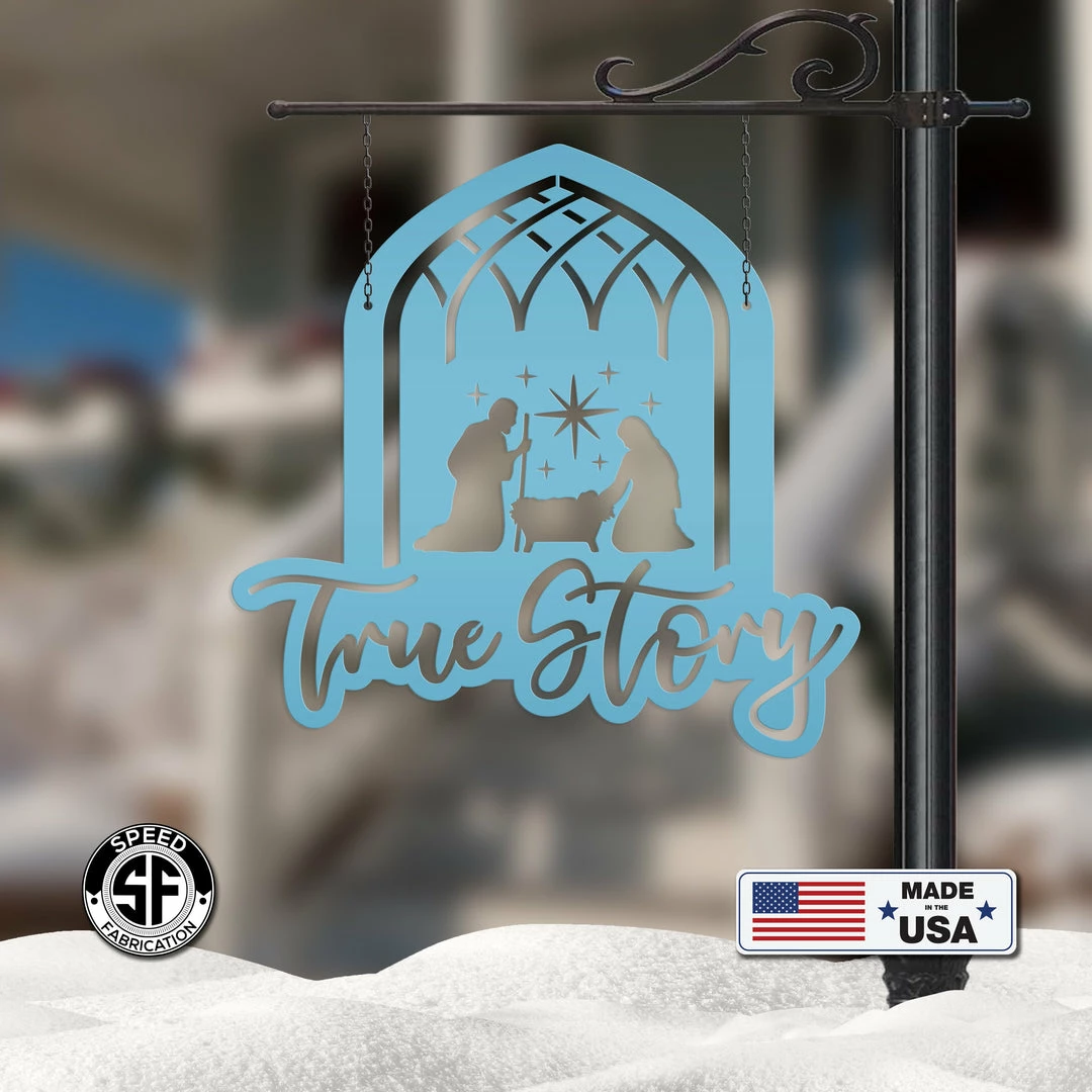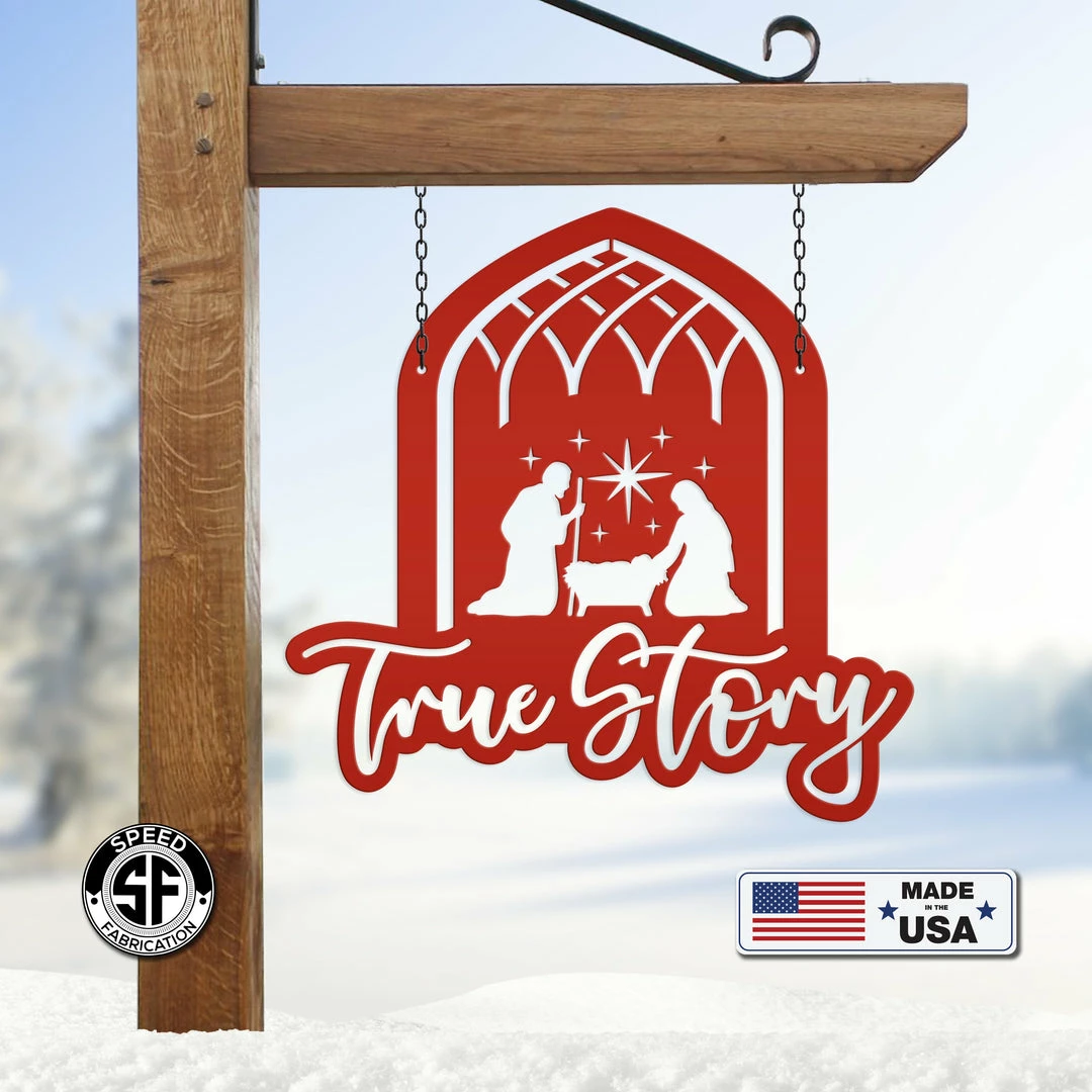 Our Indoor Outdoor Nativity Scene is the perfect Holiday decor for your home. Hang on your front door, or on a sign hanger in your yard.
