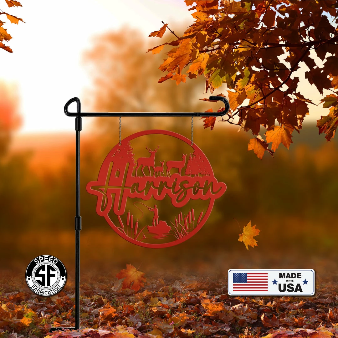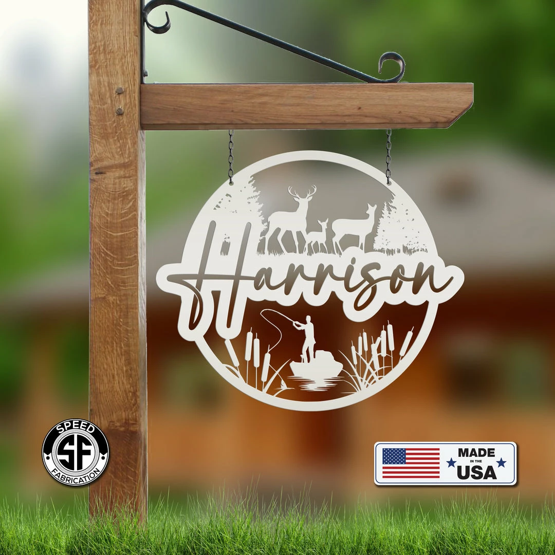 This Custom Deer and Hunting Scene Metal Sign is the perfect sign for your hunting cabin. Makes a great gift for the hunter in your life. Sizing is for the width of the sign measuring from the outer edges of the lettering.