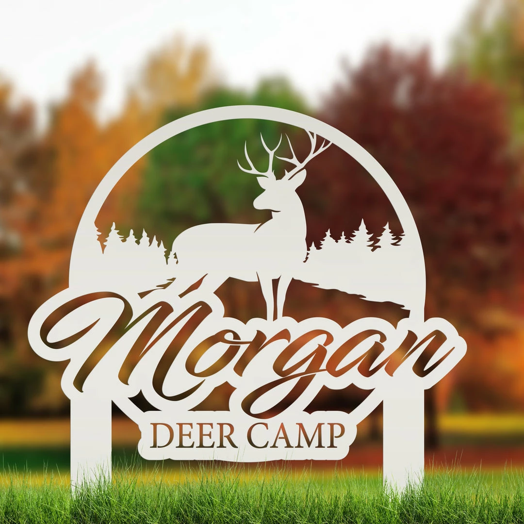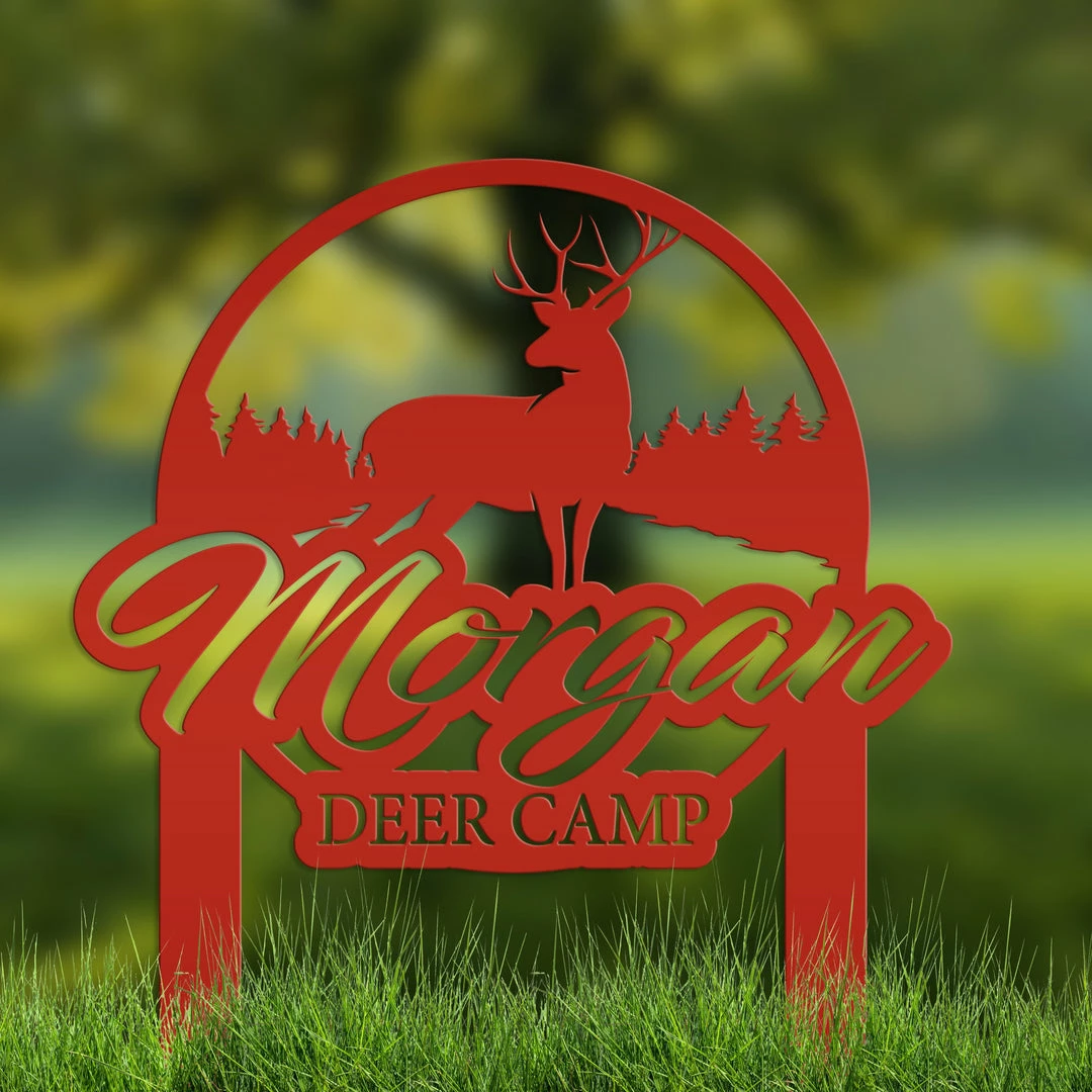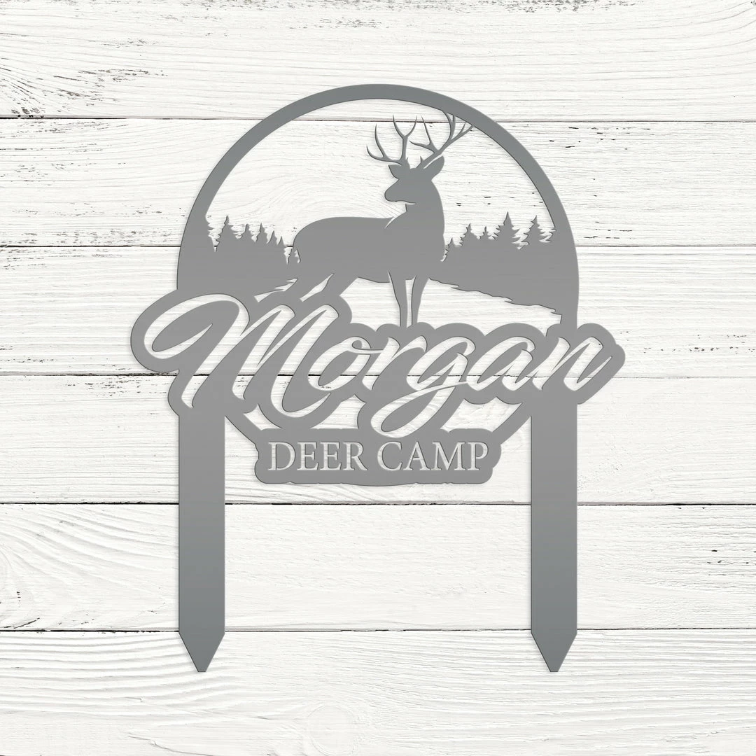 This Custom Deer Camp Metal Yard Stake is the perfect stake for your deer camp. Sizing is for the height of the sign including the stakes.