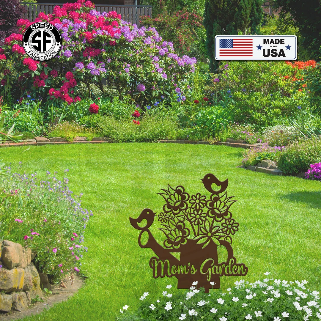 This Personalized Garden Watering Can with Flowers Metal Yard Stake Sign is the perfect sign for your garden. Makes a great Mother’s Day gift. Sizing is for the height of the sign including the stakes. Our yard stake signs are made from 14 gauge steel with a powder coated finish for a long lasting sign indoors or outdoors.