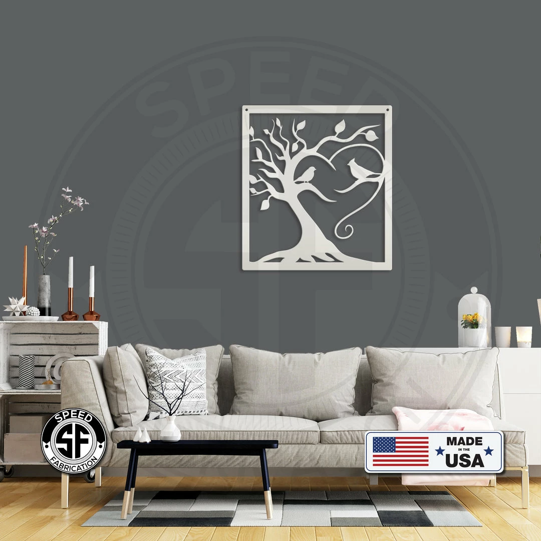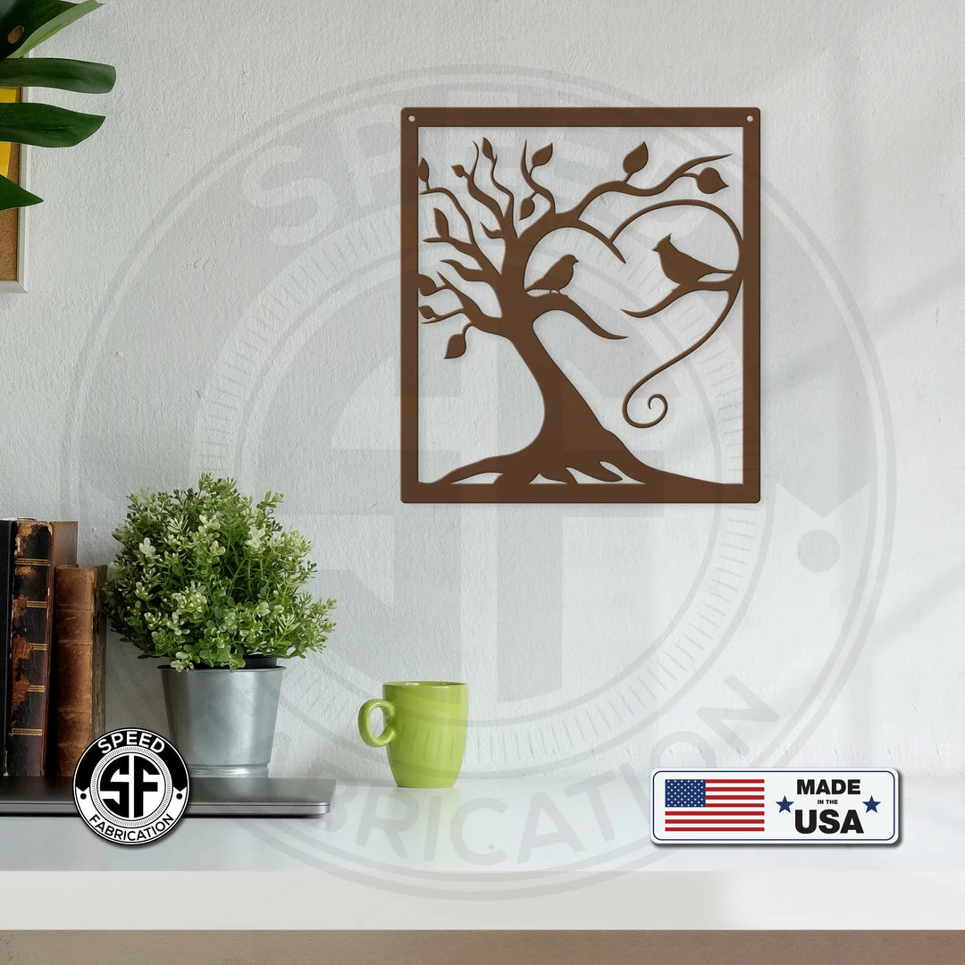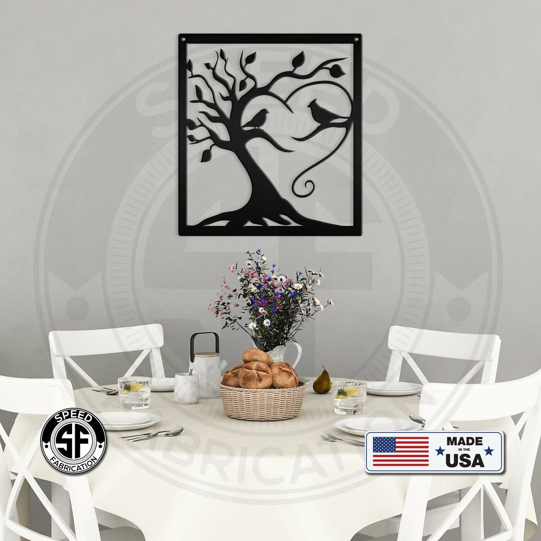 This Decorative Tree with Birds Square Metal Sign is the perfect dΓ©cor for any home. Makes a great Mother’s Day gift or any gift in general. Sizing is for the height of the sign. Our 4″ ornaments are made from 18-gauge steel, 5″ through 28″ signs are made from 16-gauge steel, 30″ through 36″ signs are made from 14-gauge steel with a powder coated finish for a long-lasting sign indoors or outdoors.