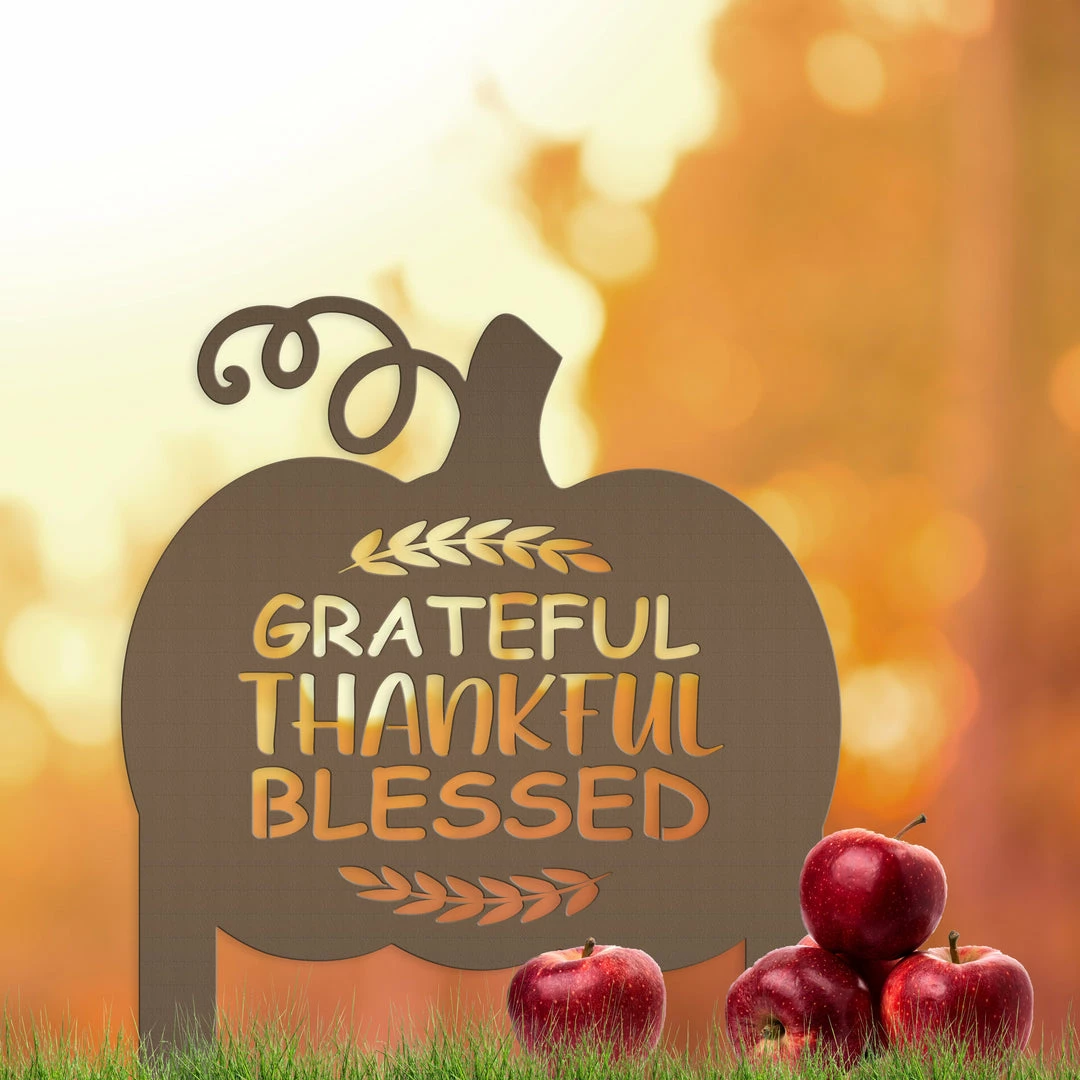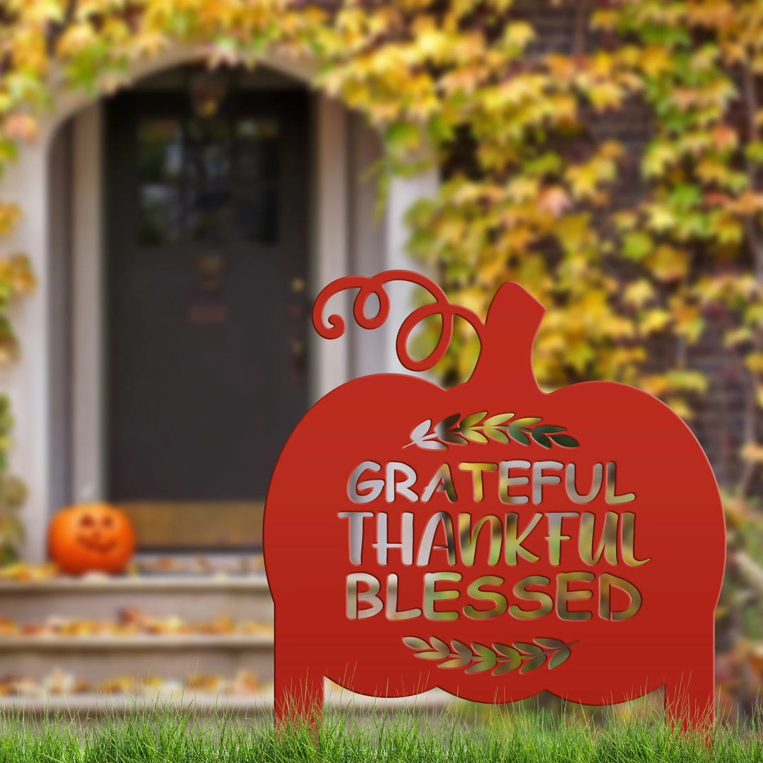 This Grateful Thankful Blessed Metal Yard Stake is the perfect autumn decor for your lawn or garden.