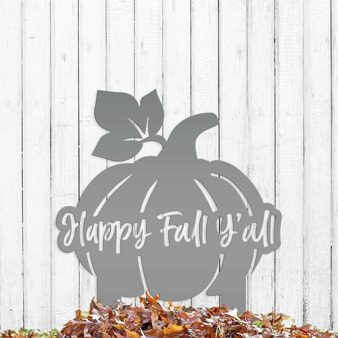 This Happy Fall Y’all Pumpkin Metal Yard Stake is the perfect autumn decor for your lawn or garden. Sizing is for the height of the sign including the stakes.