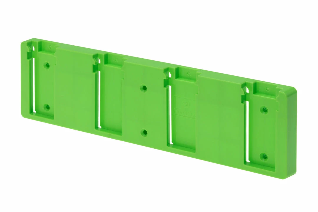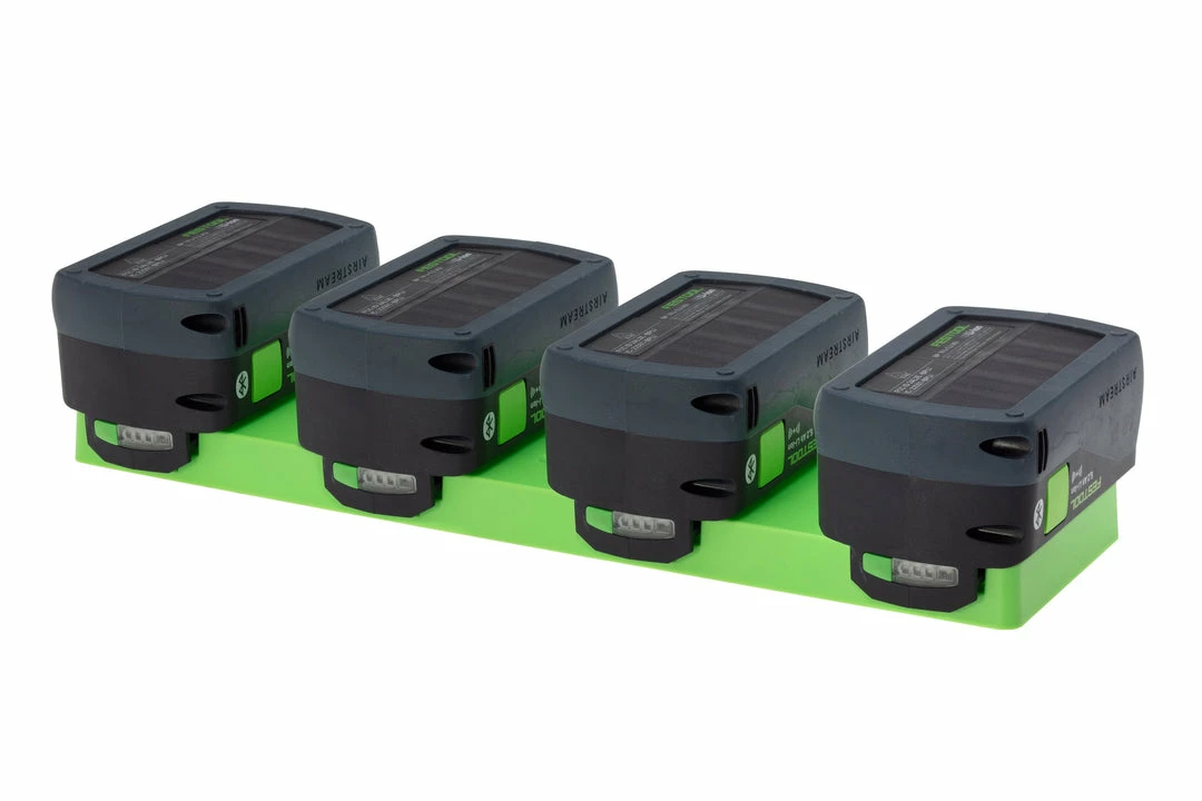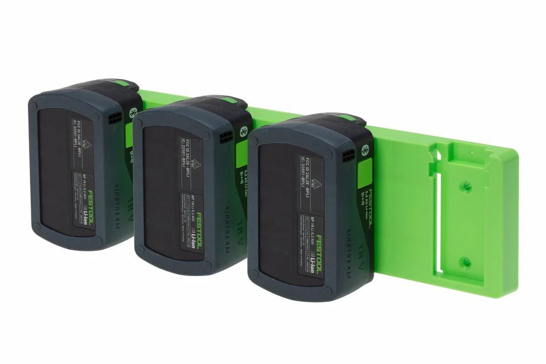 Use this holder to easily mount four 18V Festool batteries to your wall, under your workbench or in your trailer or van.