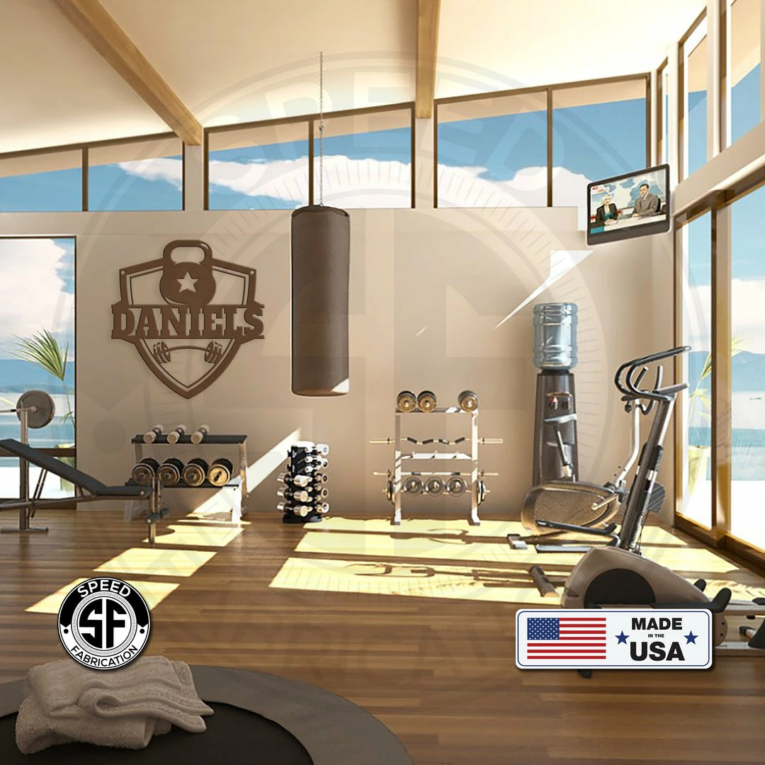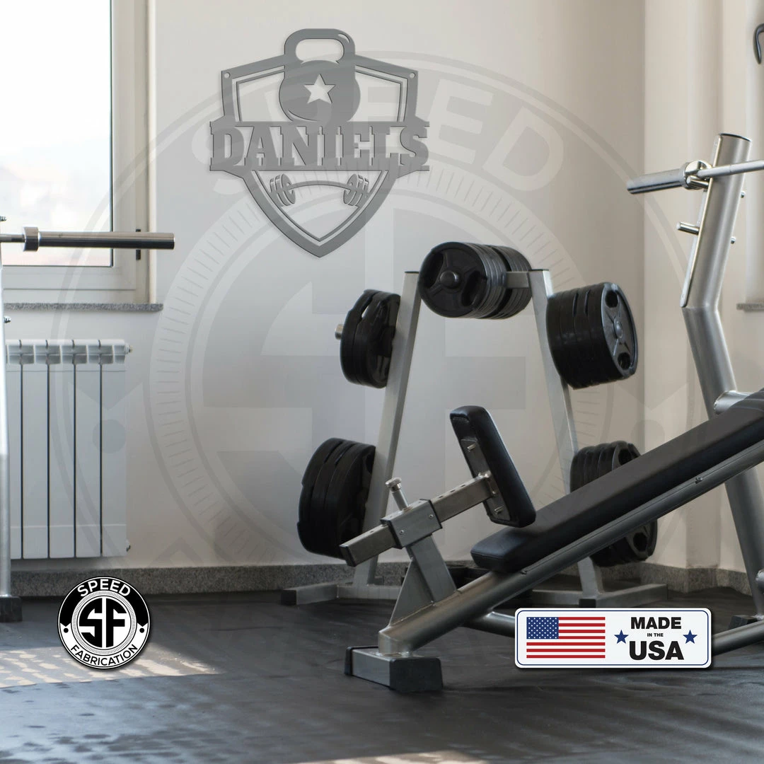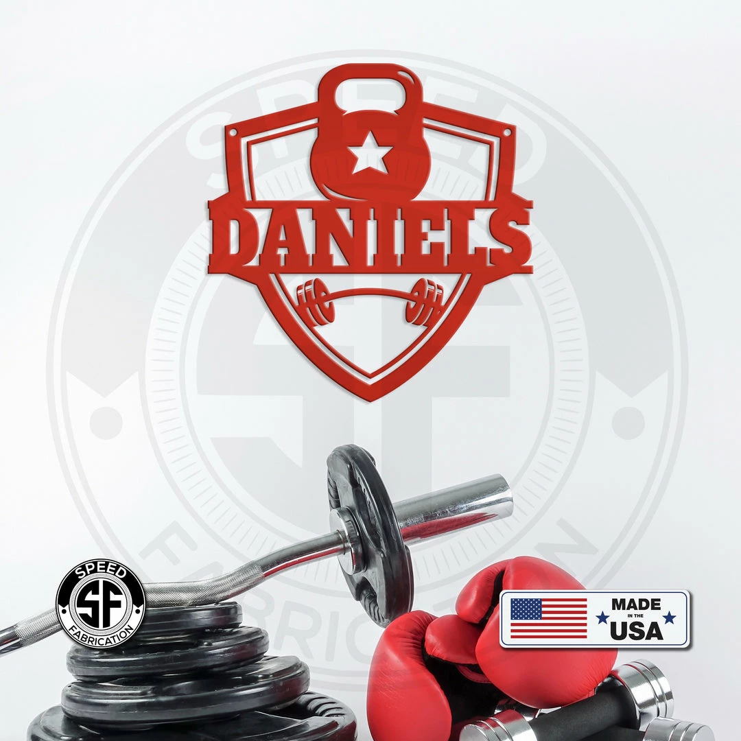 This Personalized Family Name Home Gym Kettlebell and Barbell Metal Sign is the perfect sign for any home gym. Sizing is for the height of the sign measuring from the top of the kettlebell to the bottom of the shield. Our 12″ through 28″ signs are made from 16-gauge steel, 30″ through 36″ signs are made from 14-gauge steel with a powder coated finish for a long-lasting sign indoors or outdoors.