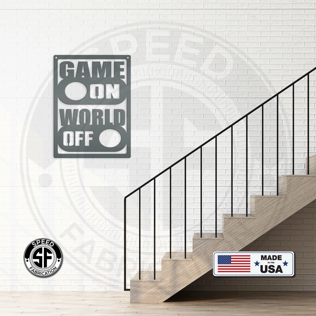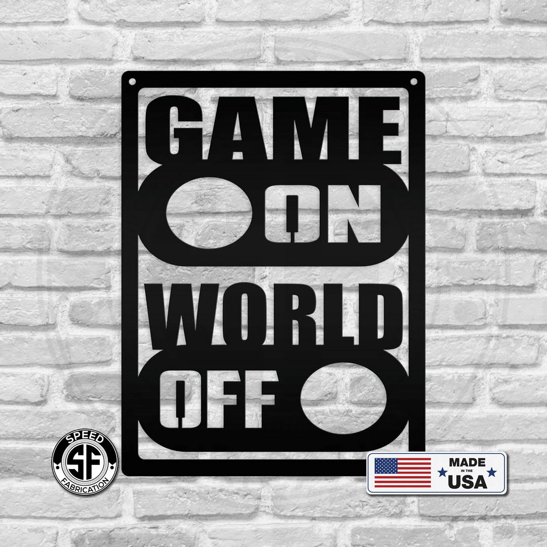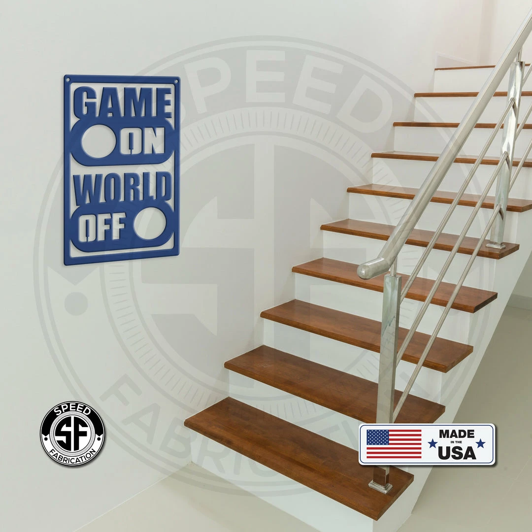 Our Game On World Off Metal Sign is the perfect sign for any family game room. Also makes a great gift for the gamer in your life. Sizing is for the height of the sign. Our 12″ through 28″ signs are made from 16 gauge steel, 30″ through 36″ signs are made from 14 gauge steel with a powder coated finish for a long lasting sign indoors or outdoors.