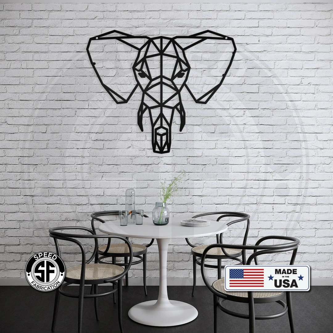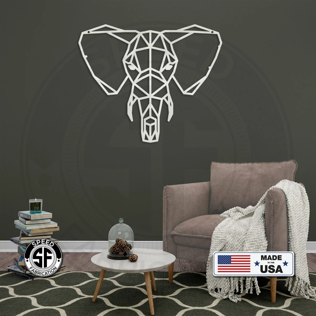 This Geometric, Polygonal, Minimalistic Elephant Home Decor Metal Sign is the perfect sign for any home. Makes a great gift. Our 4″ ornaments are made from 18-gauge steel, 5″ through 28″ signs are made from 16-gauge steel, 30″ through 36″ signs are made from 14-gauge steel with a powder coated finish for a long-lasting sign indoors or outdoors.