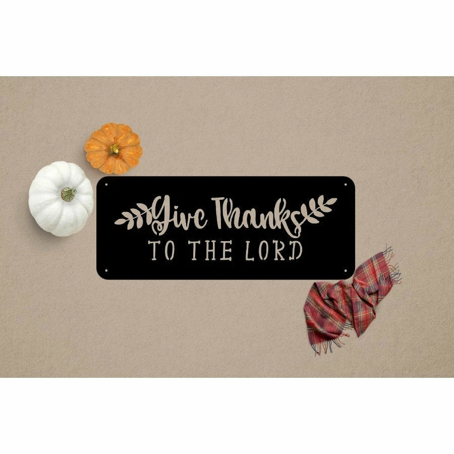 Adorn your wall with this statement piece that can be left all year round, as we should give thanks in all seasons! Perfect for any season just change your decor around it. Our 12″ through 28″ signs are made from 16 gauge steel, 30″ through 36″ signs are made from 14 gauge steel with a powder coated finish for a long lasting sign indoors or outdoors. Sizing is for the width of the sign.