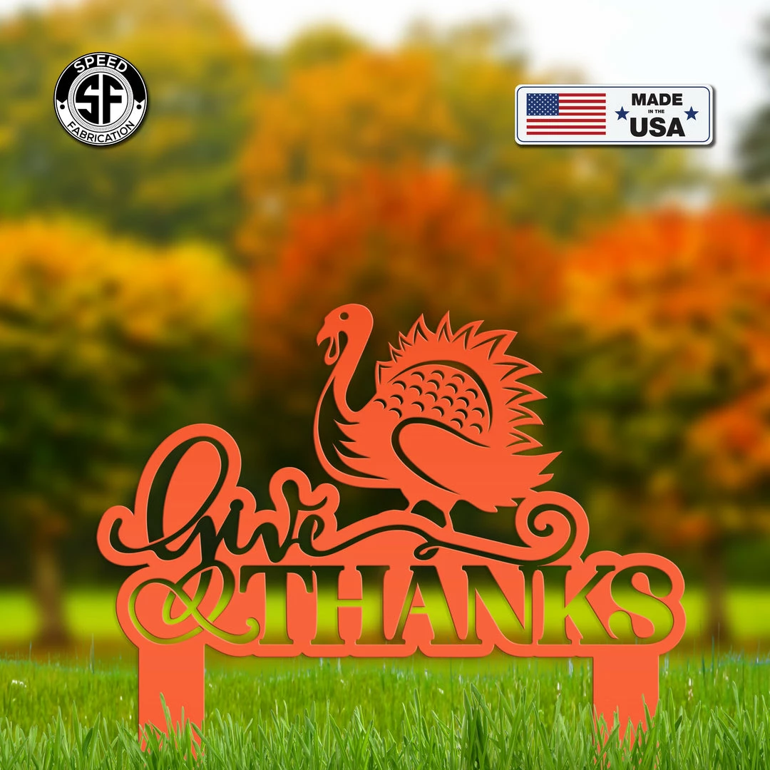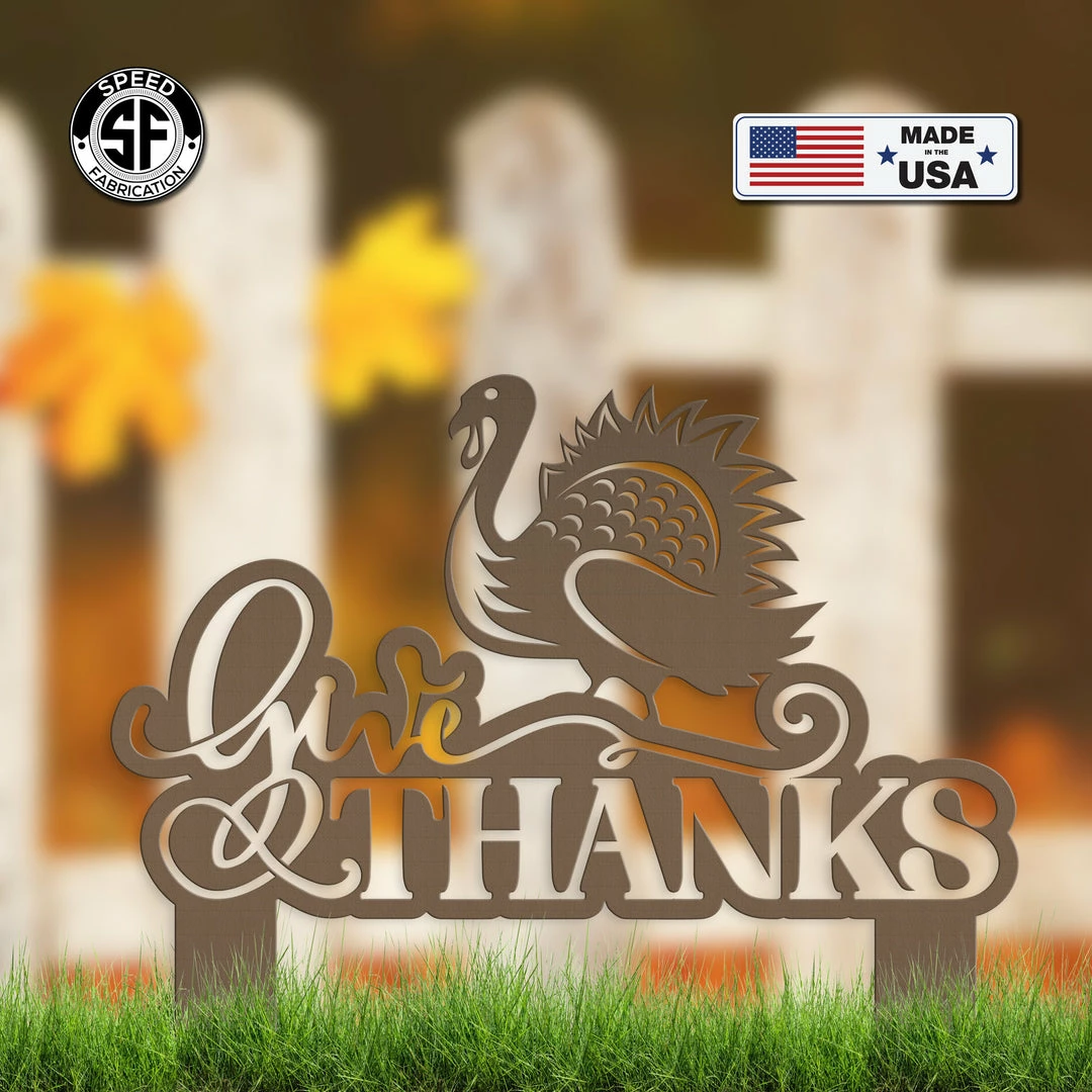 This Give Thanks Turkey Metal Yard Stake is the perfect autumn decor for your lawn or garden.