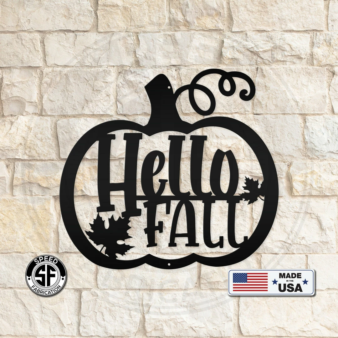 Our Hello Fall Pumpkin Autumn Décor Metal Sign is the perfect Autumn décor for any home. Sizing is for the width of the sign. Our 12″ through 28″ signs are made from 16 gauge steel, 30″ through 36″ signs are made from 14 gauge steel with a powder coated finish for a long lasting sign indoors or outdoors.