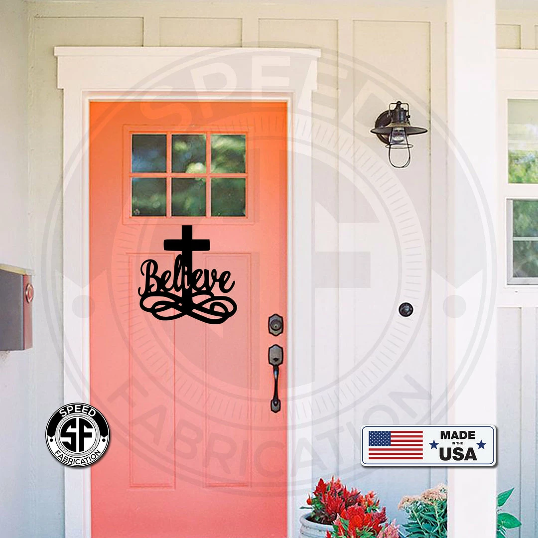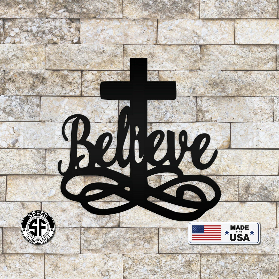 Believe Cross Metal Sign is a great additon to any wall in your house or office. Also makes a great gift for an occasion. Our 12″ through 28″ signs are made from 16 gauge steel, 30″ through 36″ signs are made from 14 gauge steel with a powder coated finish for a long lasting sign indoors or outdoors.