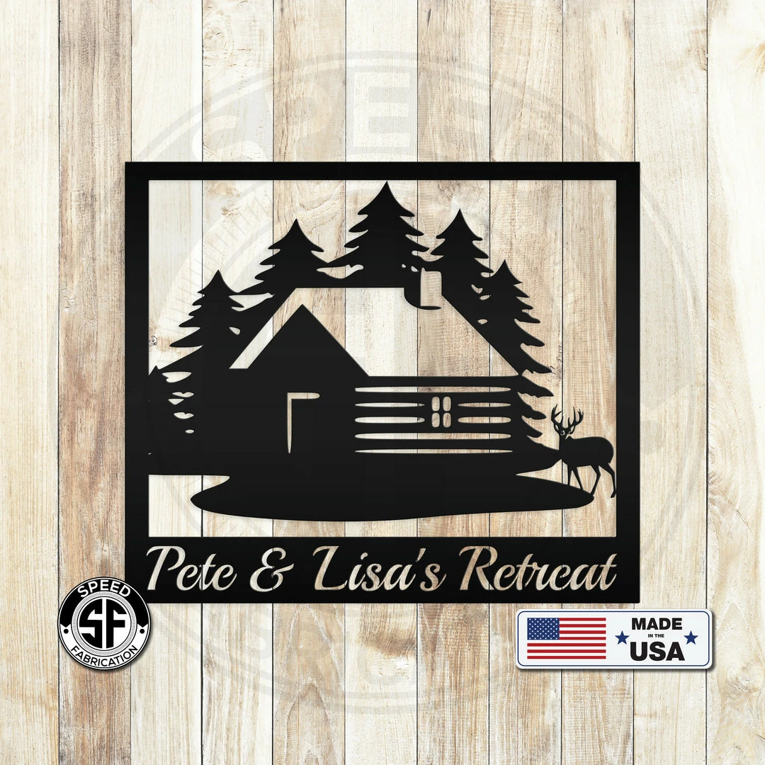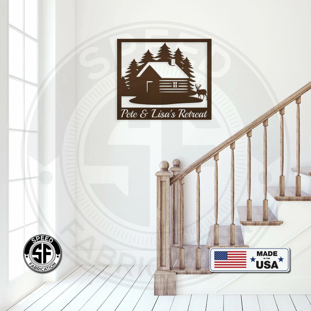 This Personalized Cabin with Deer Metal Sign is the perfect decor for any cabin or home. Our 12″ through 28″ signs are made from 16 gauge steel, 30″ through 36″ signs are made from 14 gauge steel with a powder coated finish for a long lasting sign indoors or outdoors.