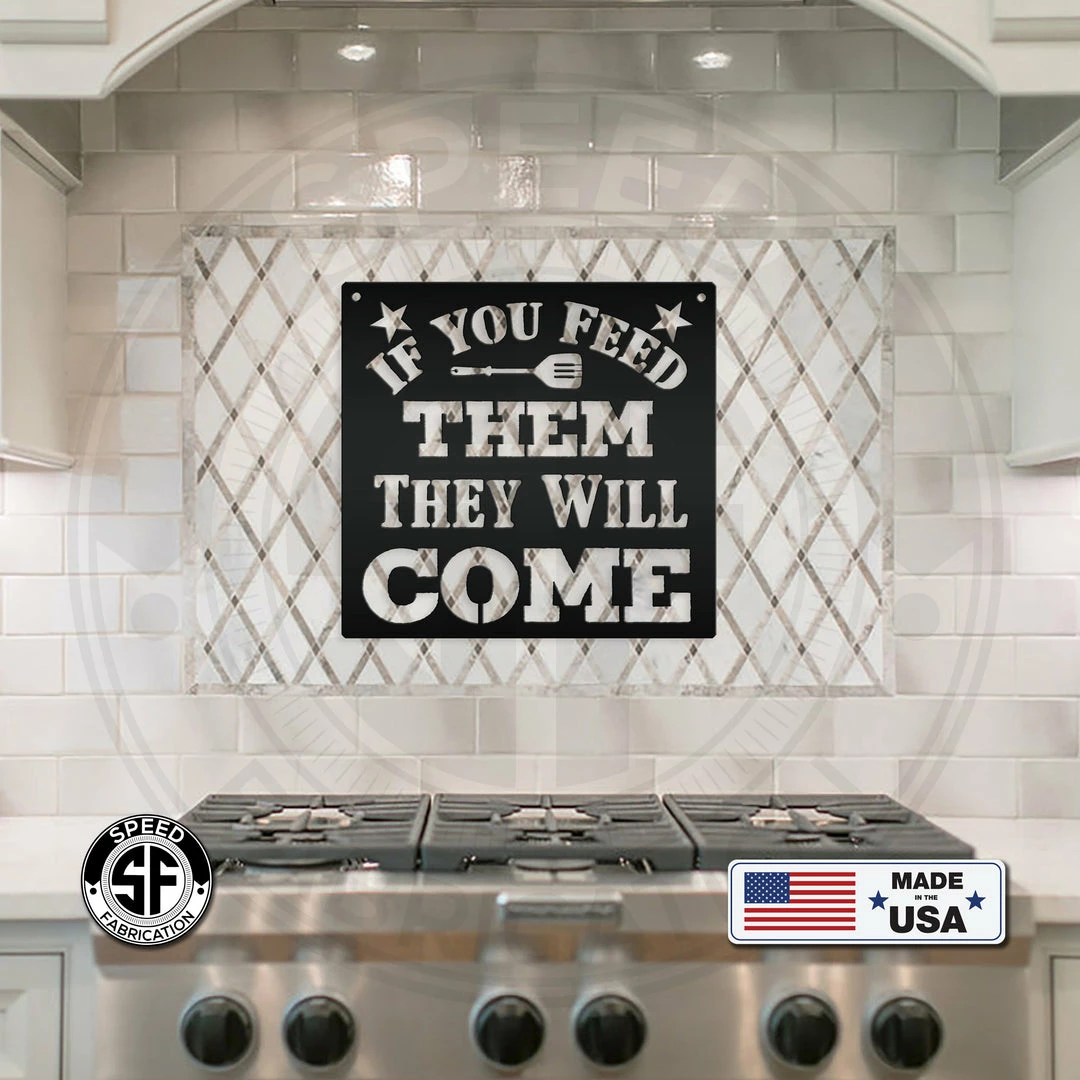 Our If You Feed Them They Will Come Metal Sign is the perfect decor for any home. Our 12″ through 28″ signs are made from 16 gauge steel, 30″ through 36″ signs are made from 14 gauge steel with a powdercoated finish for a long lasting sign indoors or outdoors.