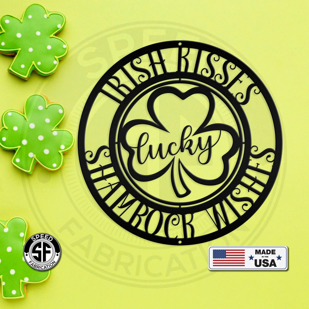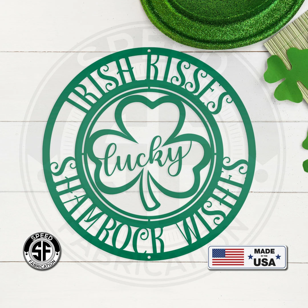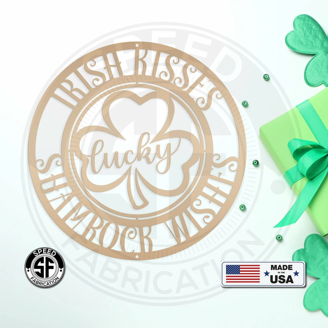 This Irish Kisses Shamrock Wishes St. Patrick’s Day Metal Sign is the perfect decor to celebrate St. Patrick’s Day. Our 10″ through 28″ signs are made from 16-gauge steel, 30″ through 36″ signs are made from 14-gauge steel with a powder coated finish for a long-lasting sign indoors or outdoors.