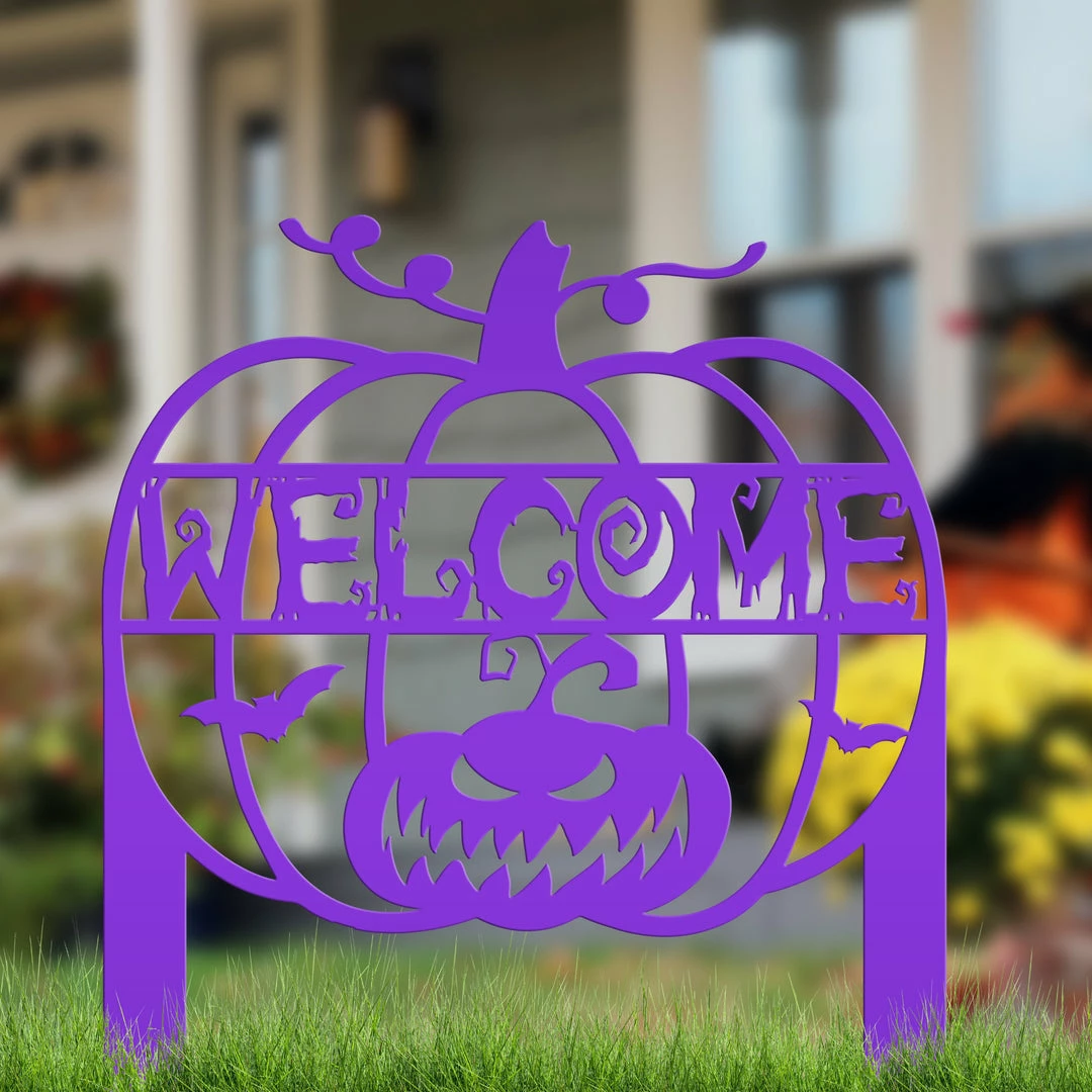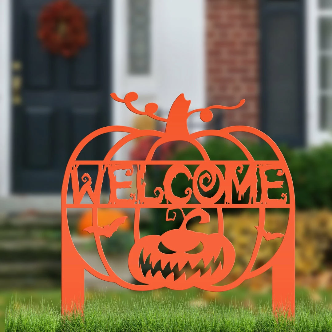 This Jack O Lantern Metal Yard Stake is the perfect Halloween decor for your lawn or garden.
