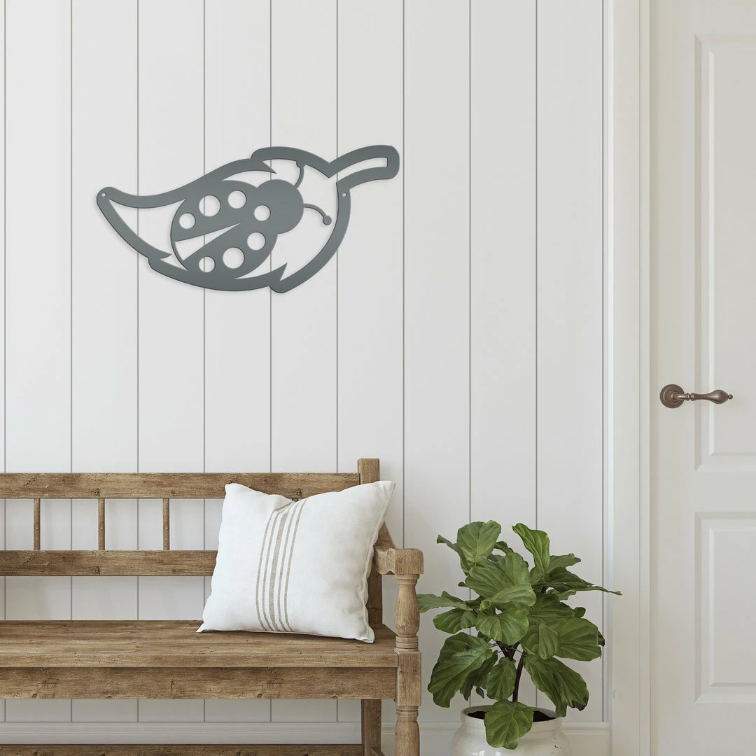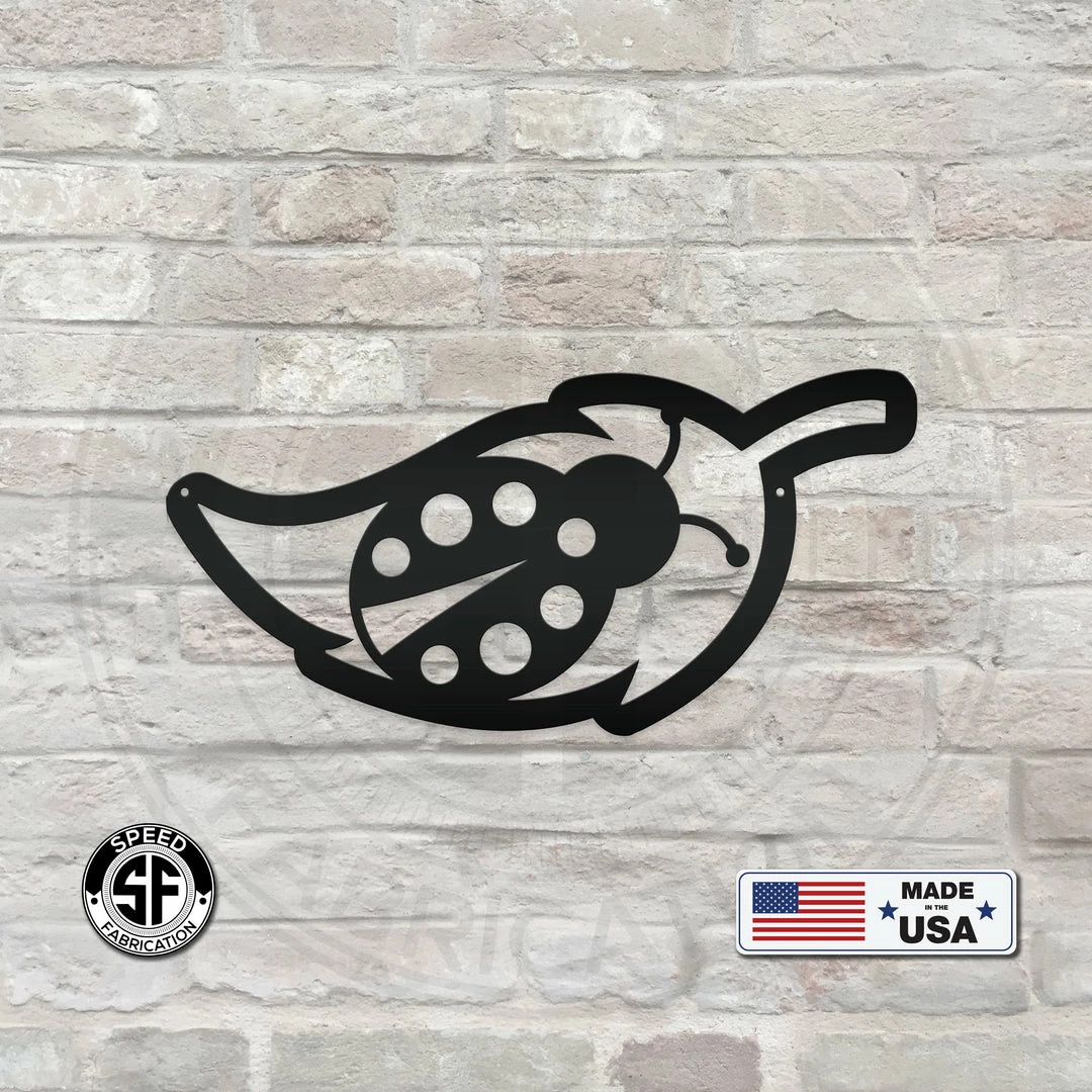 Our Ladybug with Leaf Outline Metal Sign is the perfect decor for any home. Our 12″ through 28″ signs are made from 16 gauge steel, 30″ through 36″ signs are made from 14 gauge steel with a powder coated finish for a long lasting sign indoors or outdoors. Sizing is the for the width of the sign.