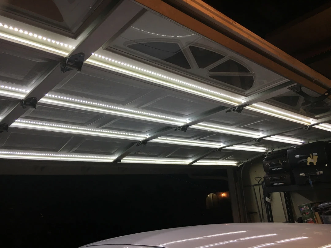 Our system includes a step by step installation guide with photos as well as FAQs to ensure a simple clean install. Thisย LED Garage Lightingย System will work with wood, non-insulated metal, and insulated metal sectional garage doors. This system takes less than an hour to install and if you donโt feel comfortable tackling it, any local garage door installer or service can handle it with ease. Further questions or clarity can be found on Instagram at @garagedoorlighting.