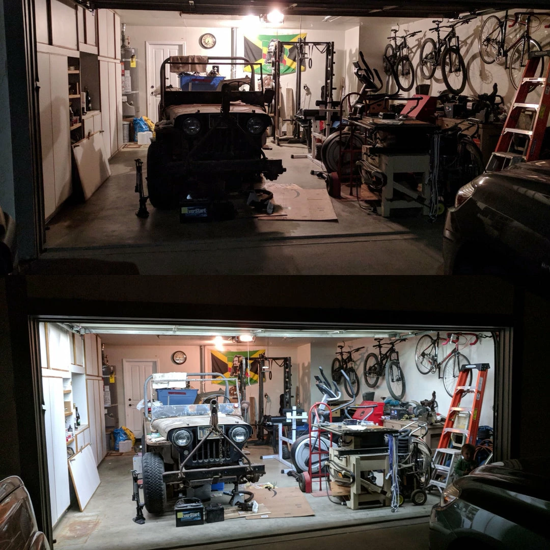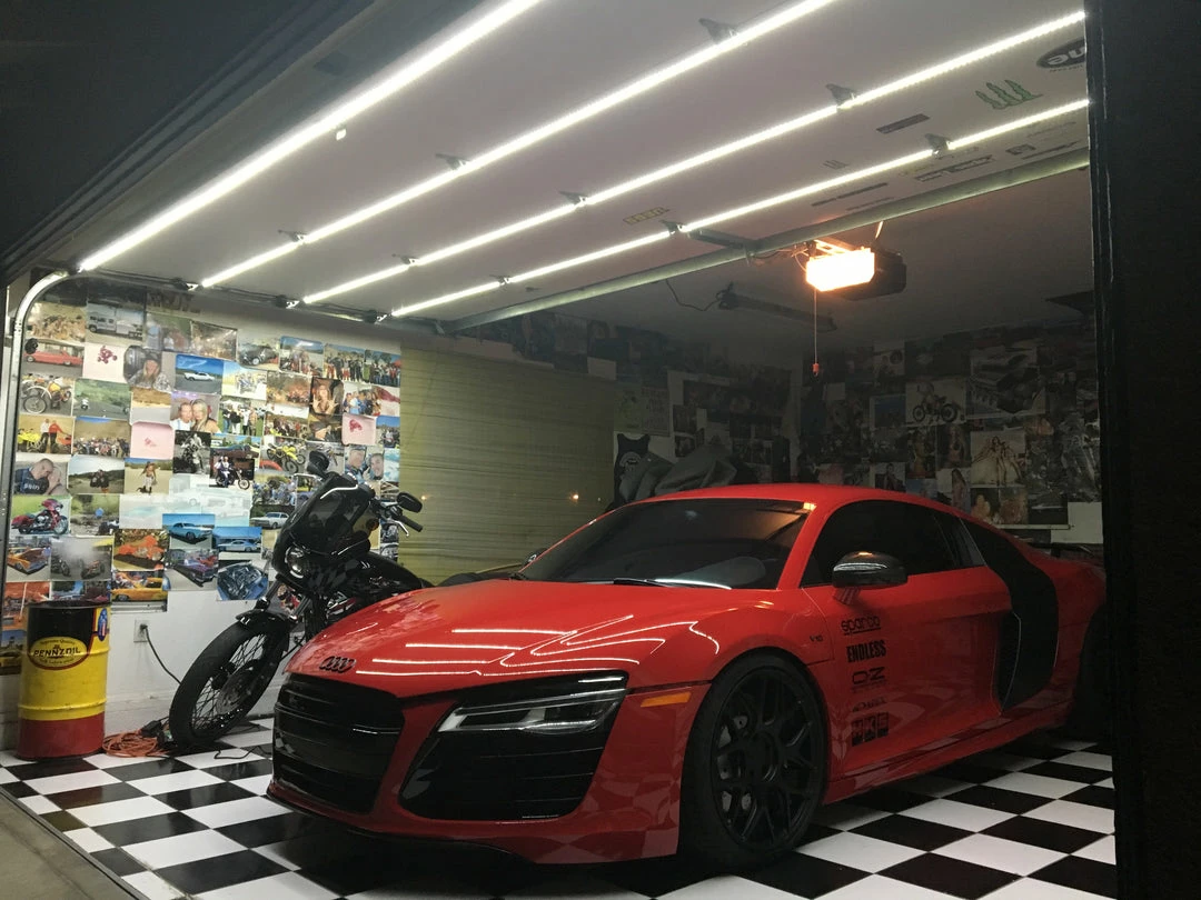 The LIINCโข Garage Door Lighting System is an adaptive low voltage LED system that is designed to seamlessly work with any sectional garage door. Our patented, adaptive, and automaticย Garage Door Lightย creates a hands-free 14.4k lumen light every time you open your garage door. Doesnโt matter if you are a seasoned DIYโer or a first-timer, you can install this 6000k daylight white lighting system.