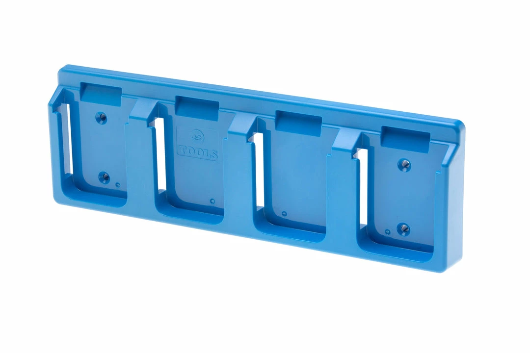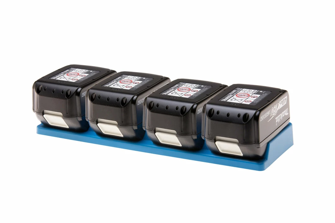 Use this holder to easily mount four 18V Makita batteries to your wall, under your workbench or in your trailer or van. Batteries clip in using the existing locking clip, so can be mounted in any direction.