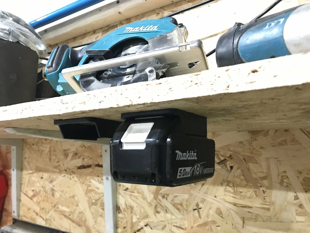 Also can be mounted on your tool belt so you can take a battery with you. Will accept all Makita LXT18V batteries.