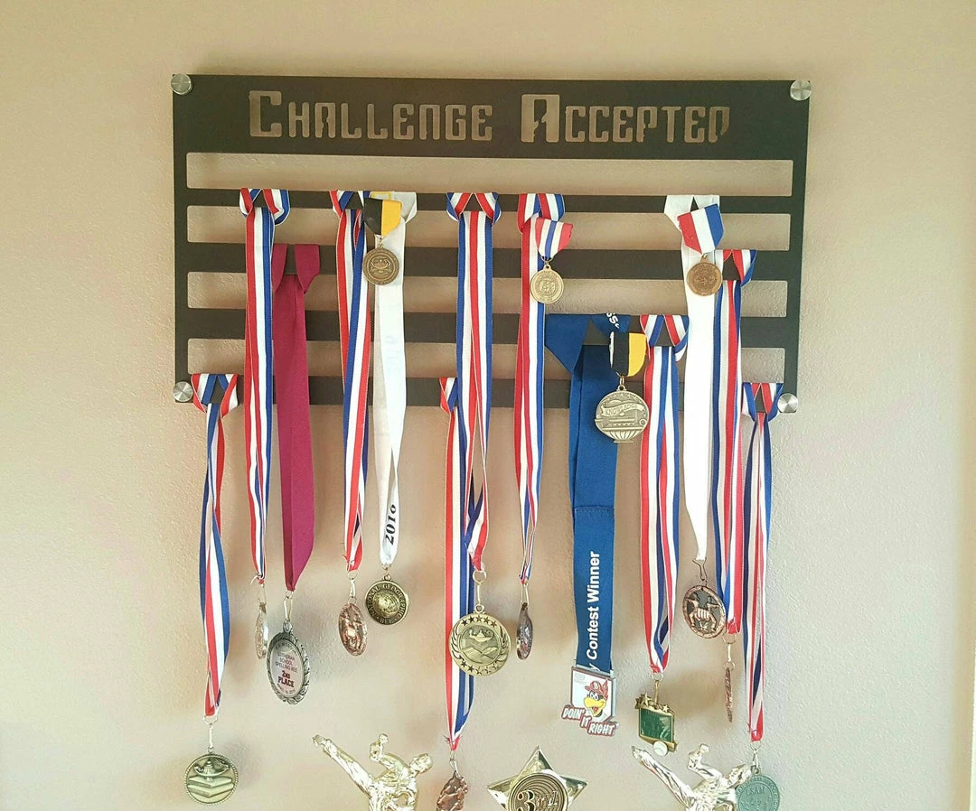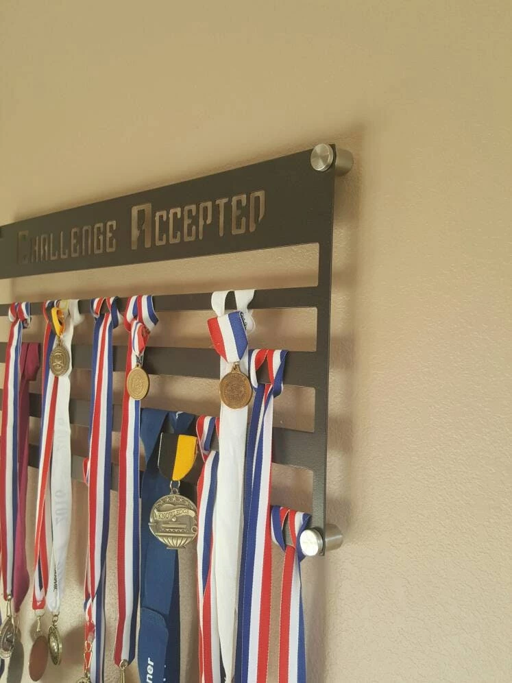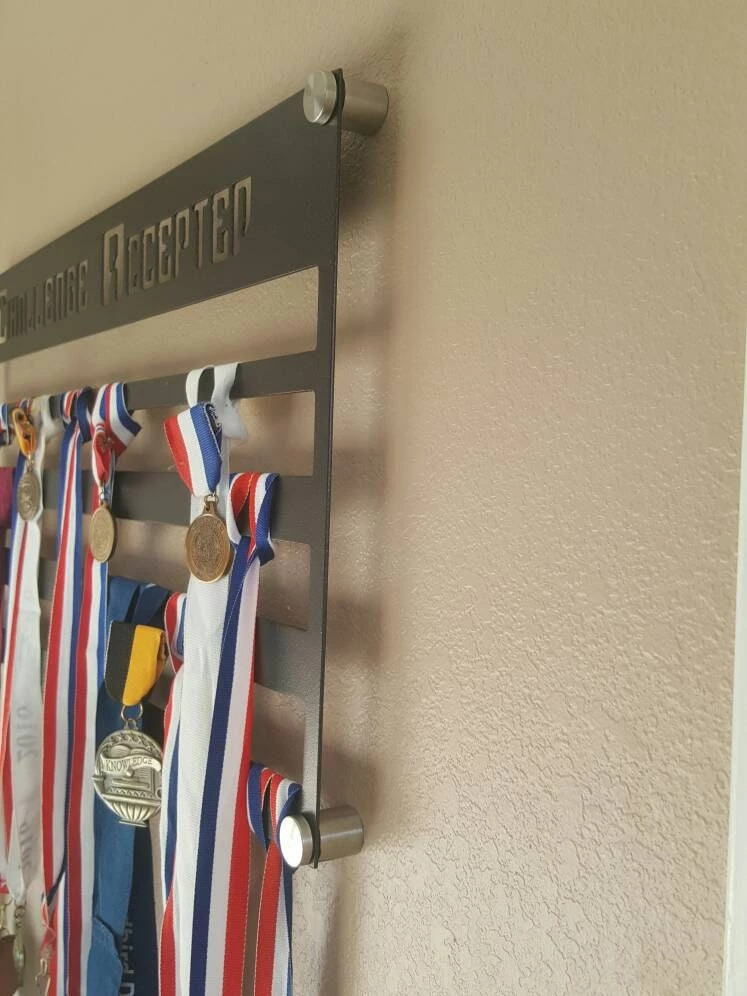 Grab all of those wadded up medals out of the drawer and proudly display them! Our customizable medal wall display makes the perfect gift for the athlete in your family.