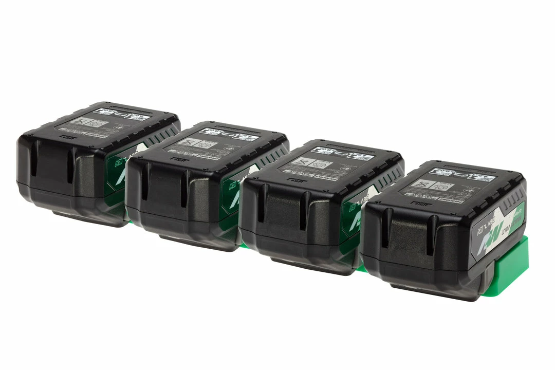 Use this holder to easily mount four battery’s to suit Hitachi 18v, Metabo HPT 36v-18v Multivolt and Hikoki 36v-18v Multivolt batteries to your wall, under your workbench or in your trailer or van.