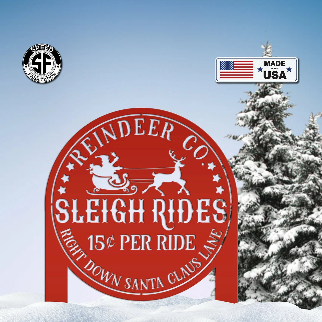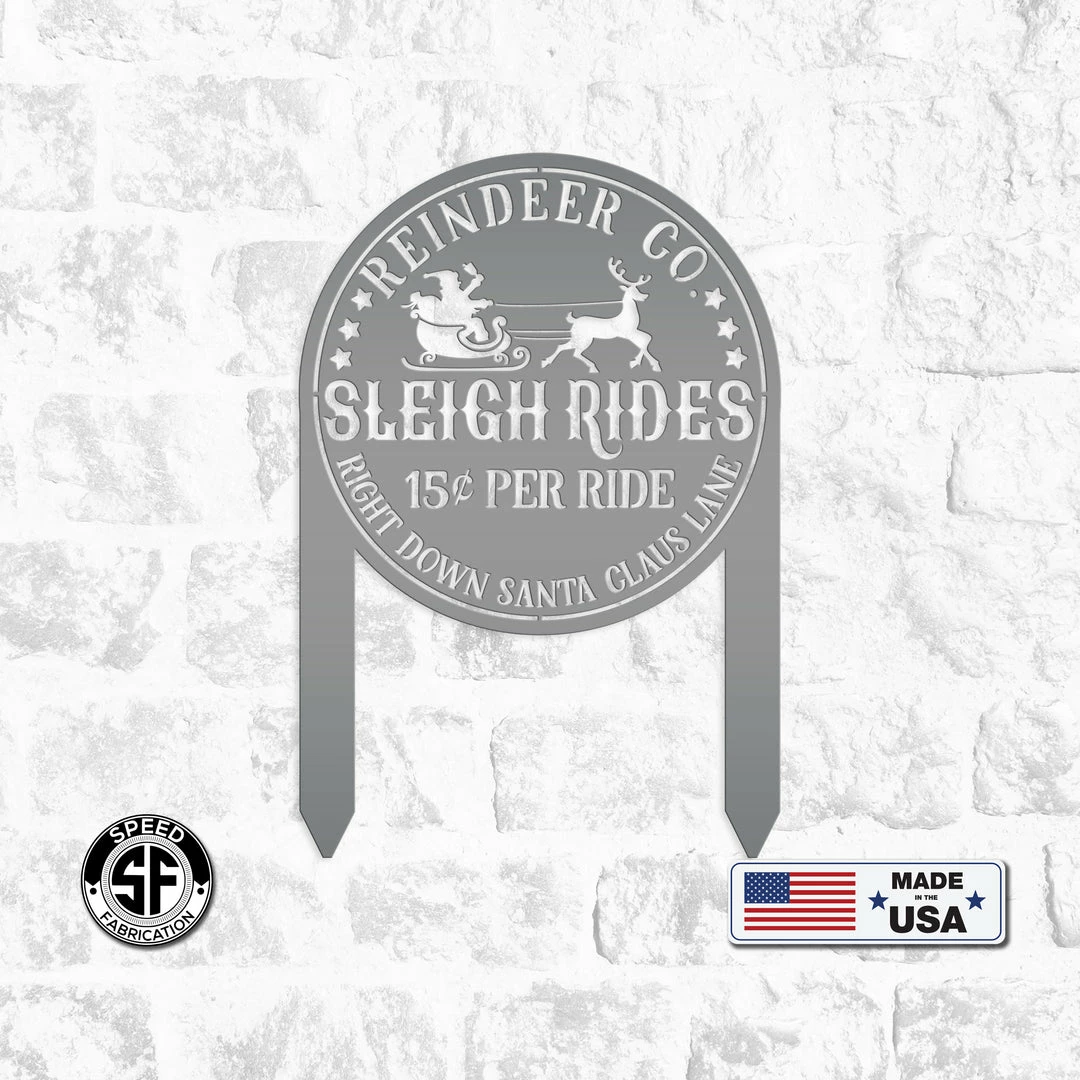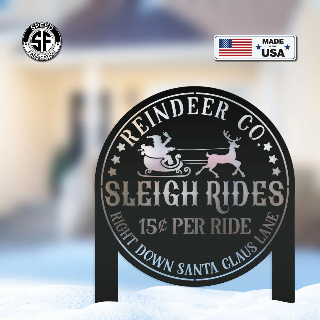 This Sleigh Rides Metal Yard Stake is the perfect Christmas decor for your lawn or garden.