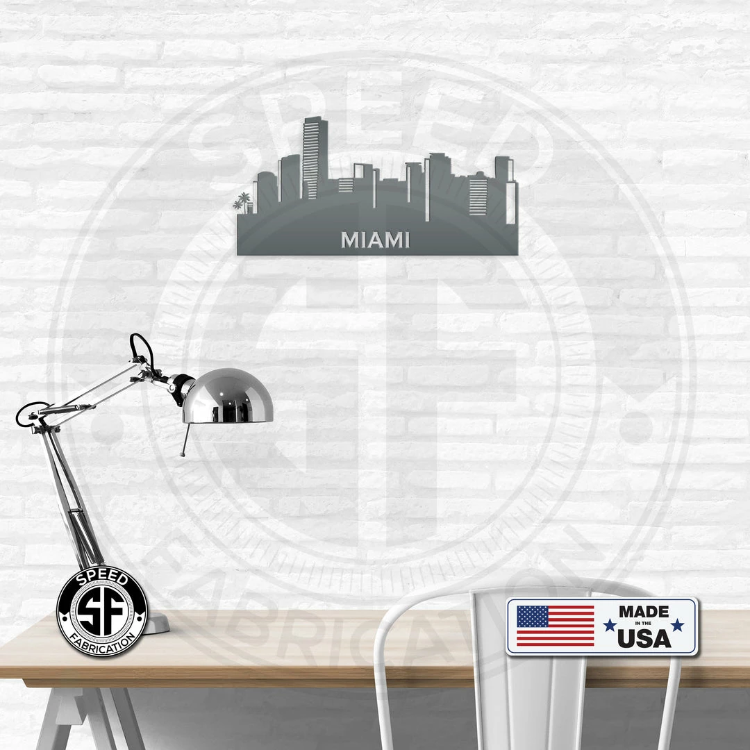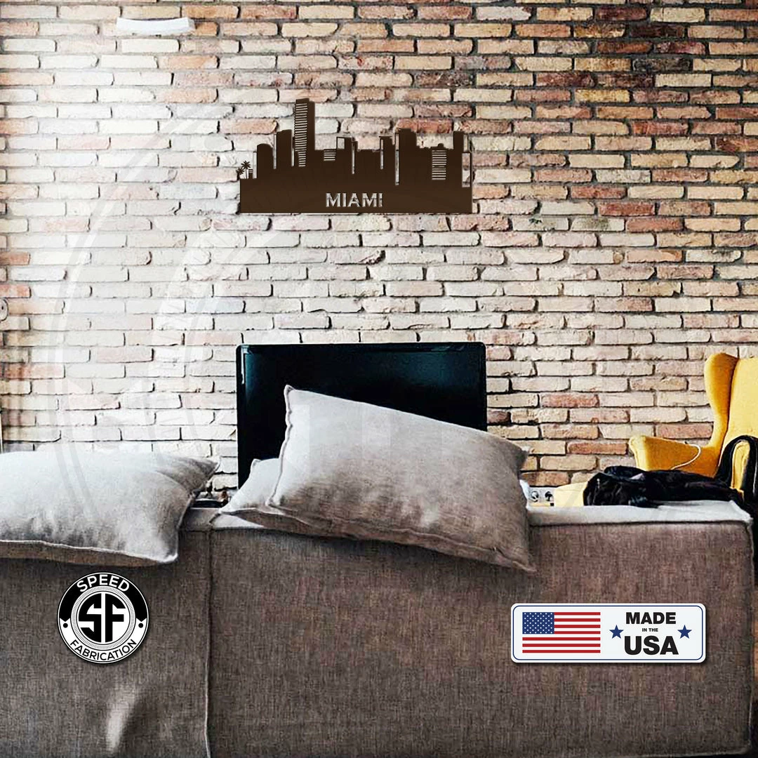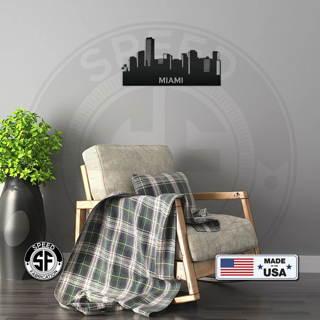 The Miami Skyline Metal Sign is the perfect decor for any home. Our 12″ through 28″ signs are made from 16 gauge steel, 30″ through 36″ signs are made from 14 gauge steel with a powder coated finish for a long lasting sign indoors or outdoors.