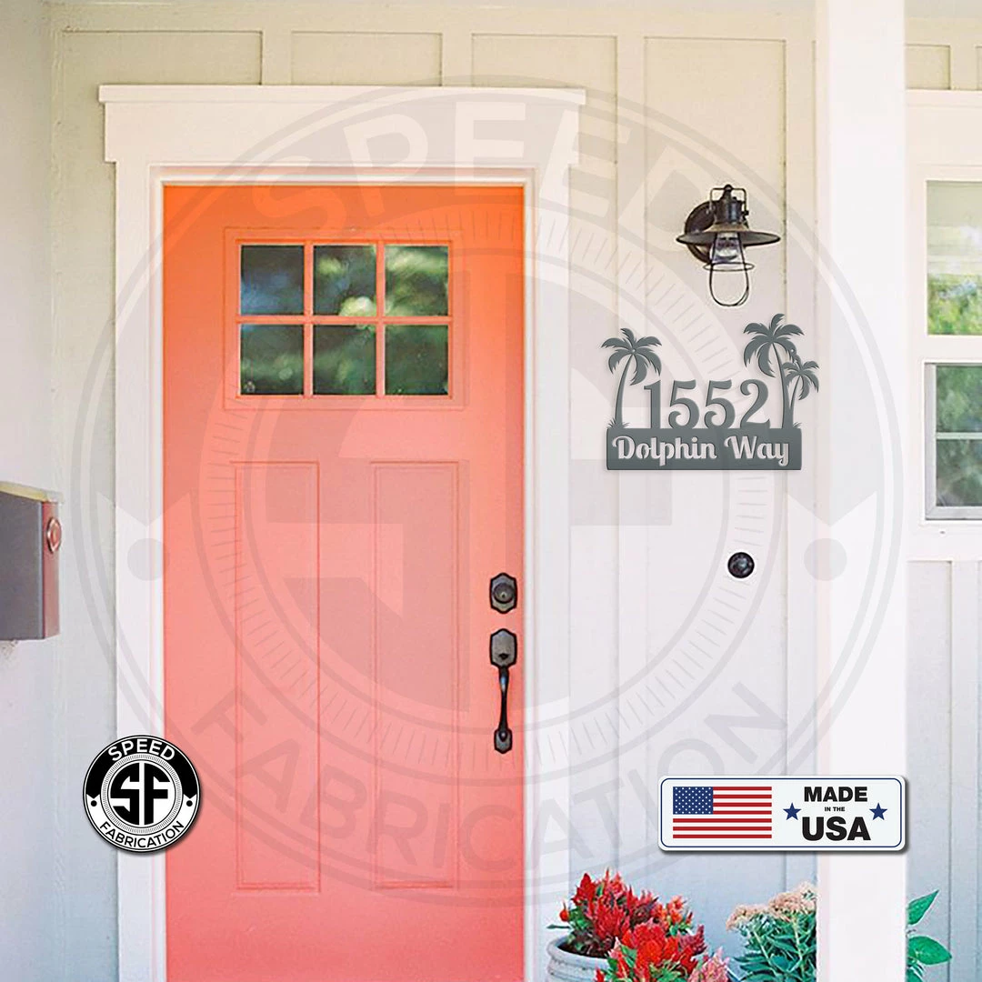 This Personalized Palm Trees House Number Address Metal Sign is the perfect sign to display your home address. This sign is made from 14 gauge steel with a powder coated finish for a long lasting sign indoors or outdoors. Sizing is for the width of the sign. Please contact us with any questions.