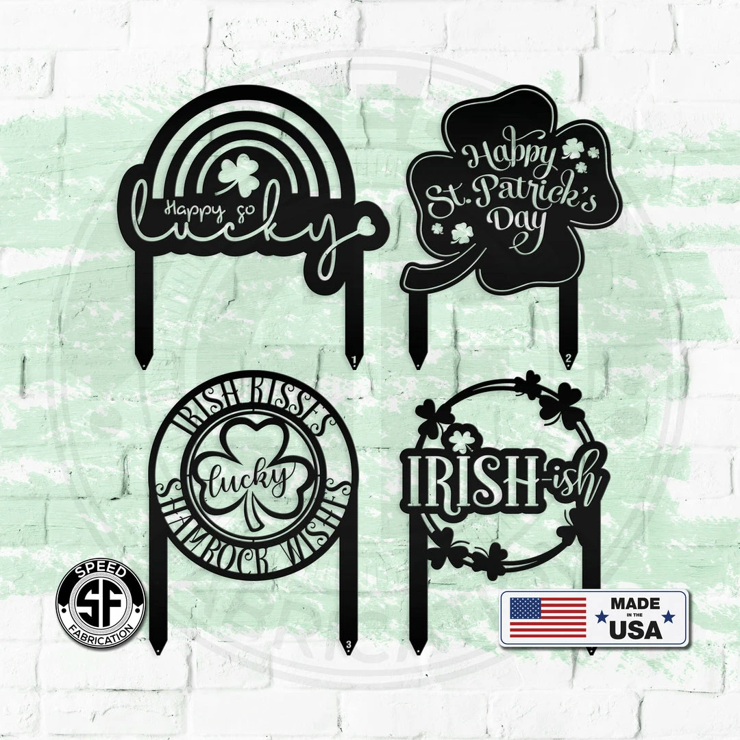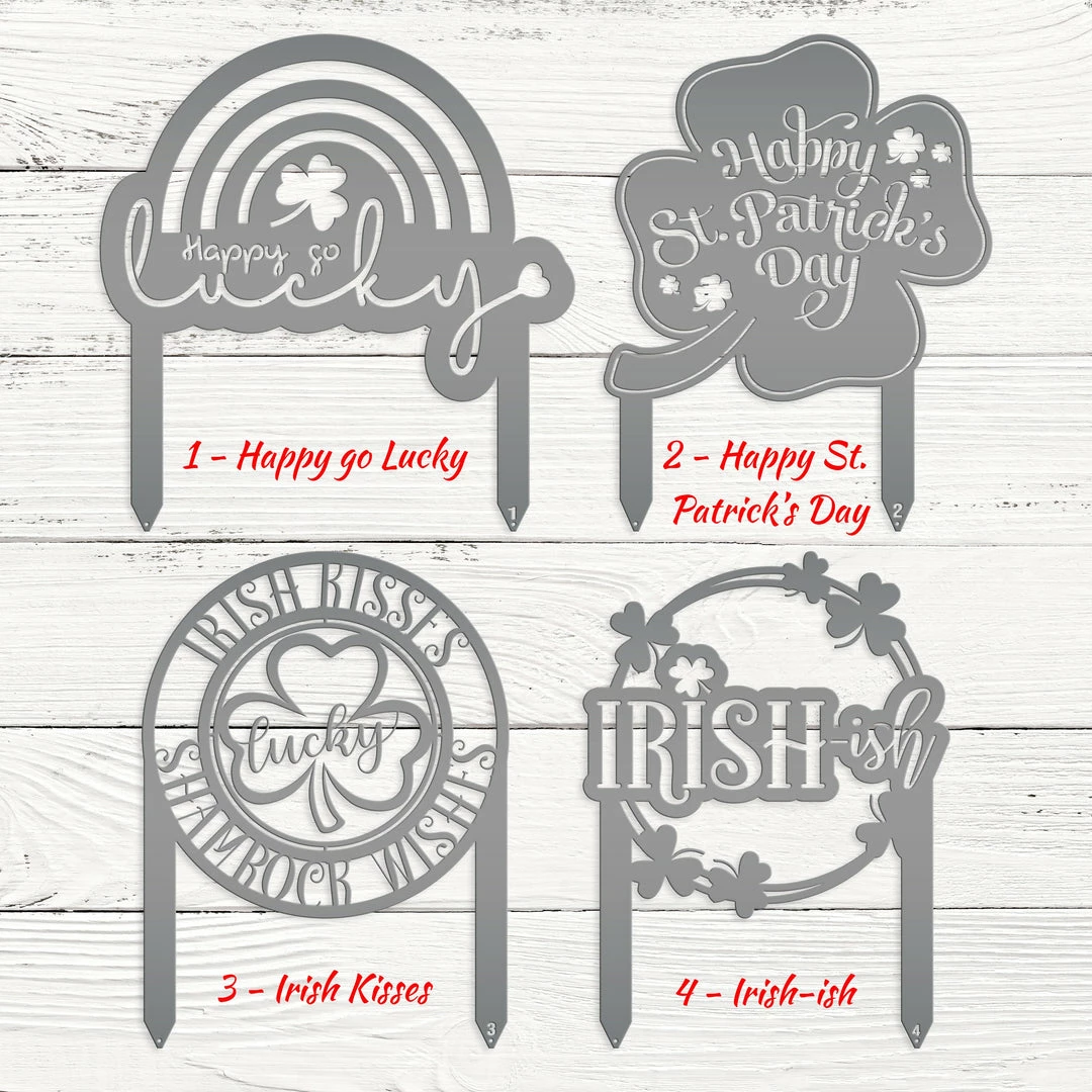 Our Assorted St. Patrick’s Day Decor Metal Yard Stakes are the perfect way to decorate your lawn or garden for St. Patrick’s Day. We offer an assortment of 4 different crosses for you to choose from. Sizes range from 17″ – 22″ wide and 17″ tall. Also includes an attached 6″ stake to brings the total height of the sign to 23″. Please refer to the numbered style picture for the style number. Our St. Patrick’s Day Yard Stakes are made from 14-gauge steel with a powder coated finish for a long-lasting sign indoors or outdoors.