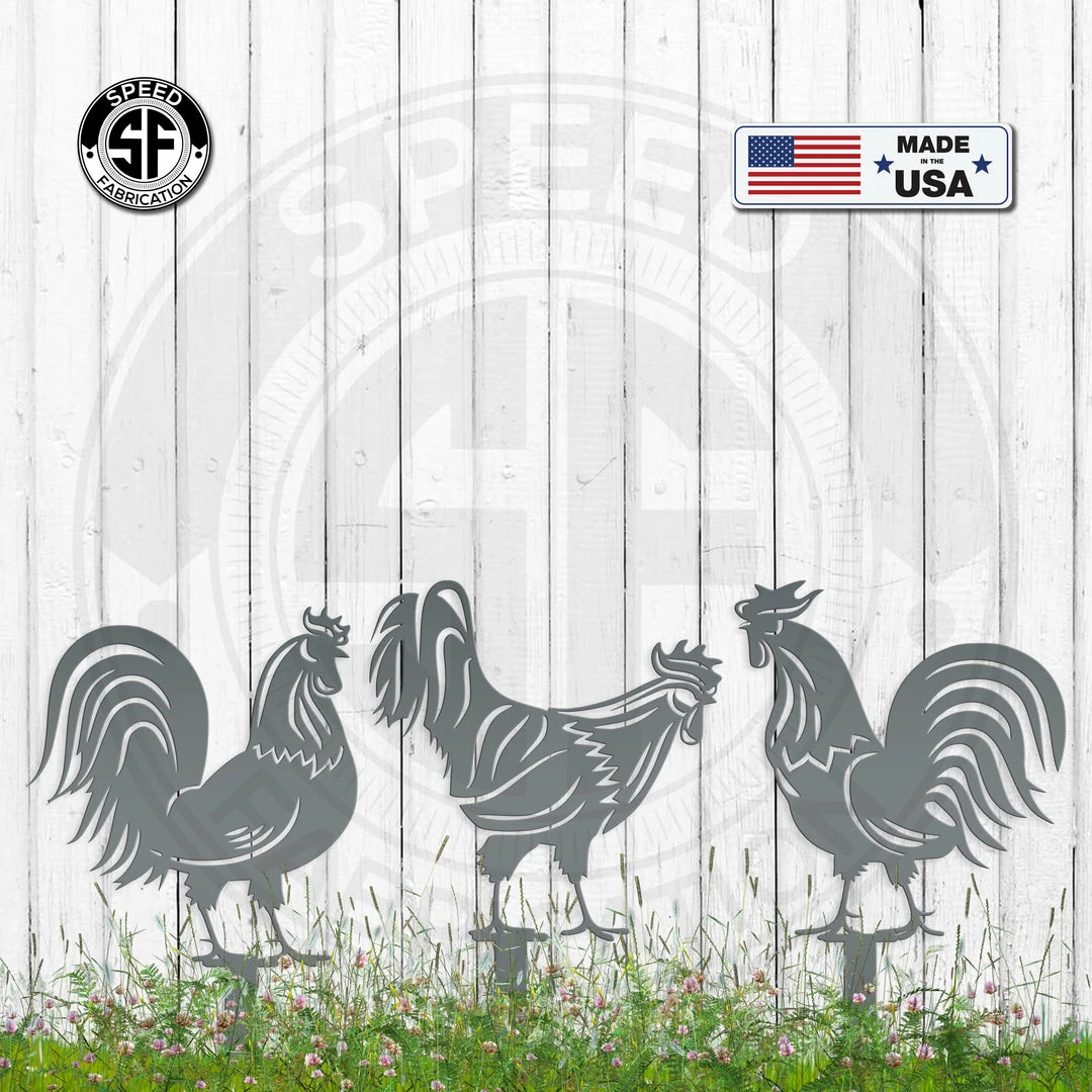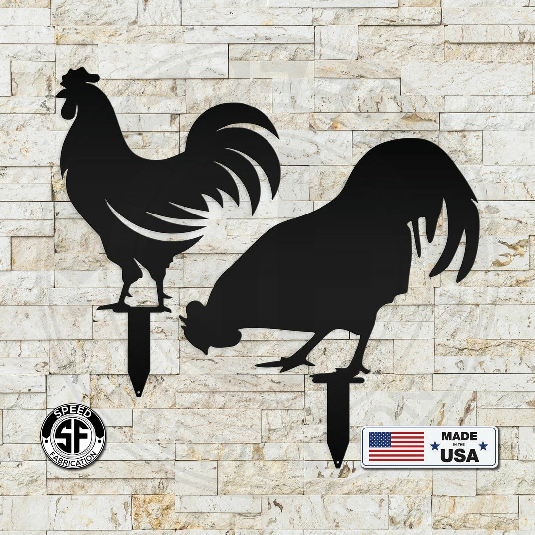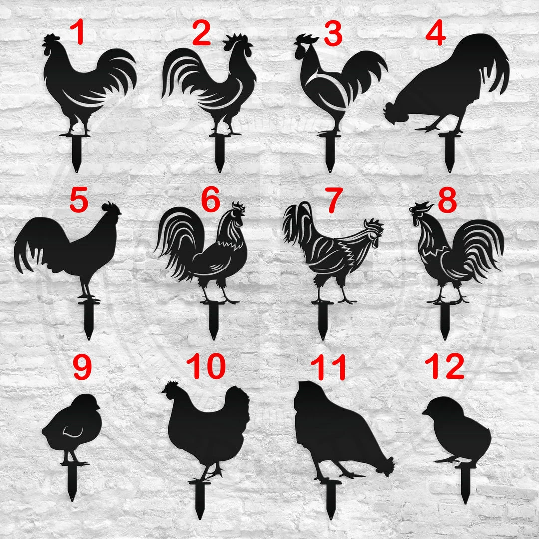 Our Assorted Chicken Garden Metal Yard Stakes are the perfect way to decorate your lawn or garden. We offer an assortment of 12 different chickens for you to choose from. Sizes range from 15″ – 20″ wide and 16″ tall, chicks are 8″ wide and 9″ tall. Also includes an attached 6″ stake to bring the total height of 22″ and 15″ tall for the chicks. Please refer to the numbered chicken picture and place the number of your choice in the personalization section. If there aren’t any numbers given, we will send you the quantity of chickens you have chosen starting chronologically. Our Chicken Yard Stakes are made from 14 gauge steel with a powder coated finish for a long lasting sign indoors or outdoors.