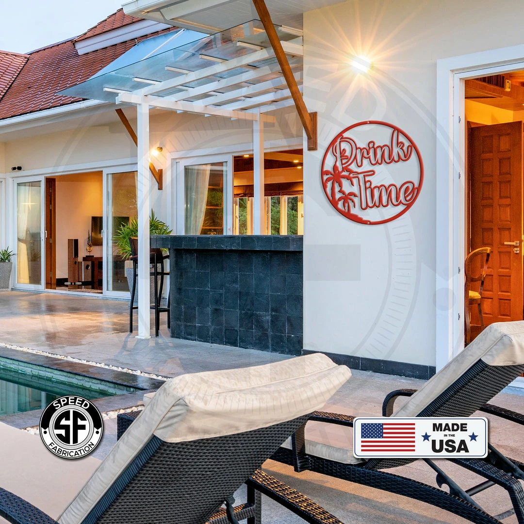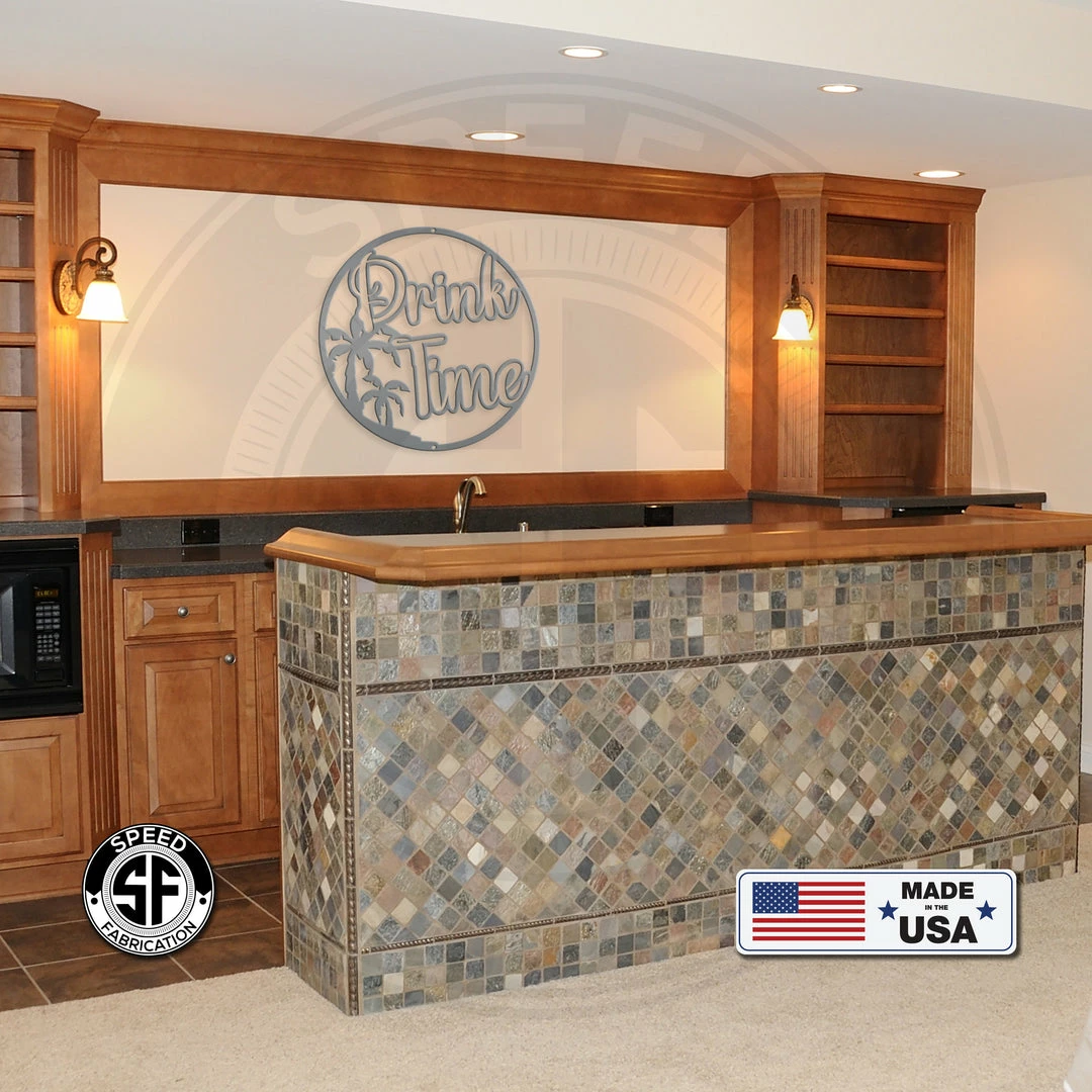Our Palm Tree Drink Time Metal Sign is the perfect sign any home or patio bar.