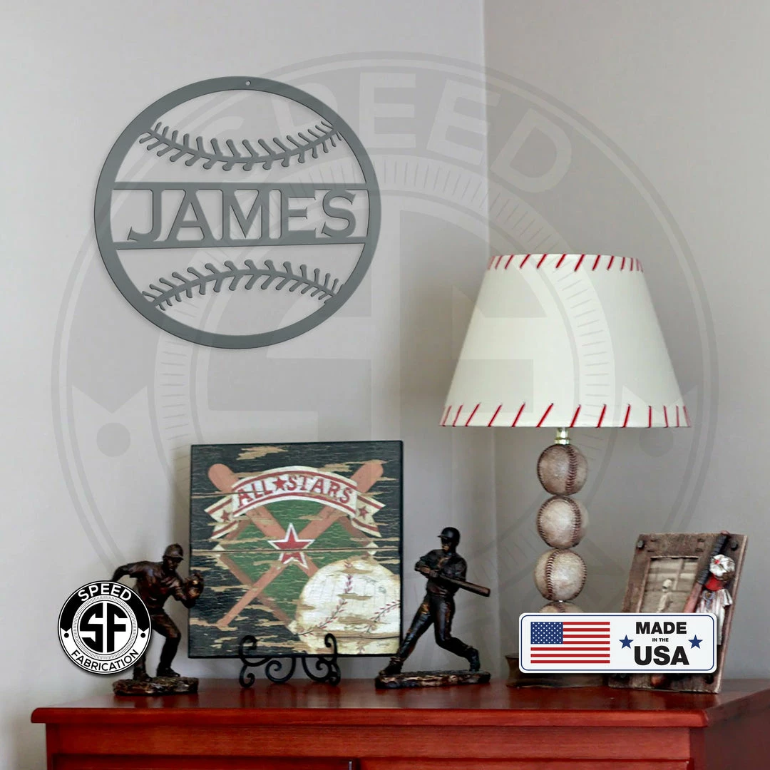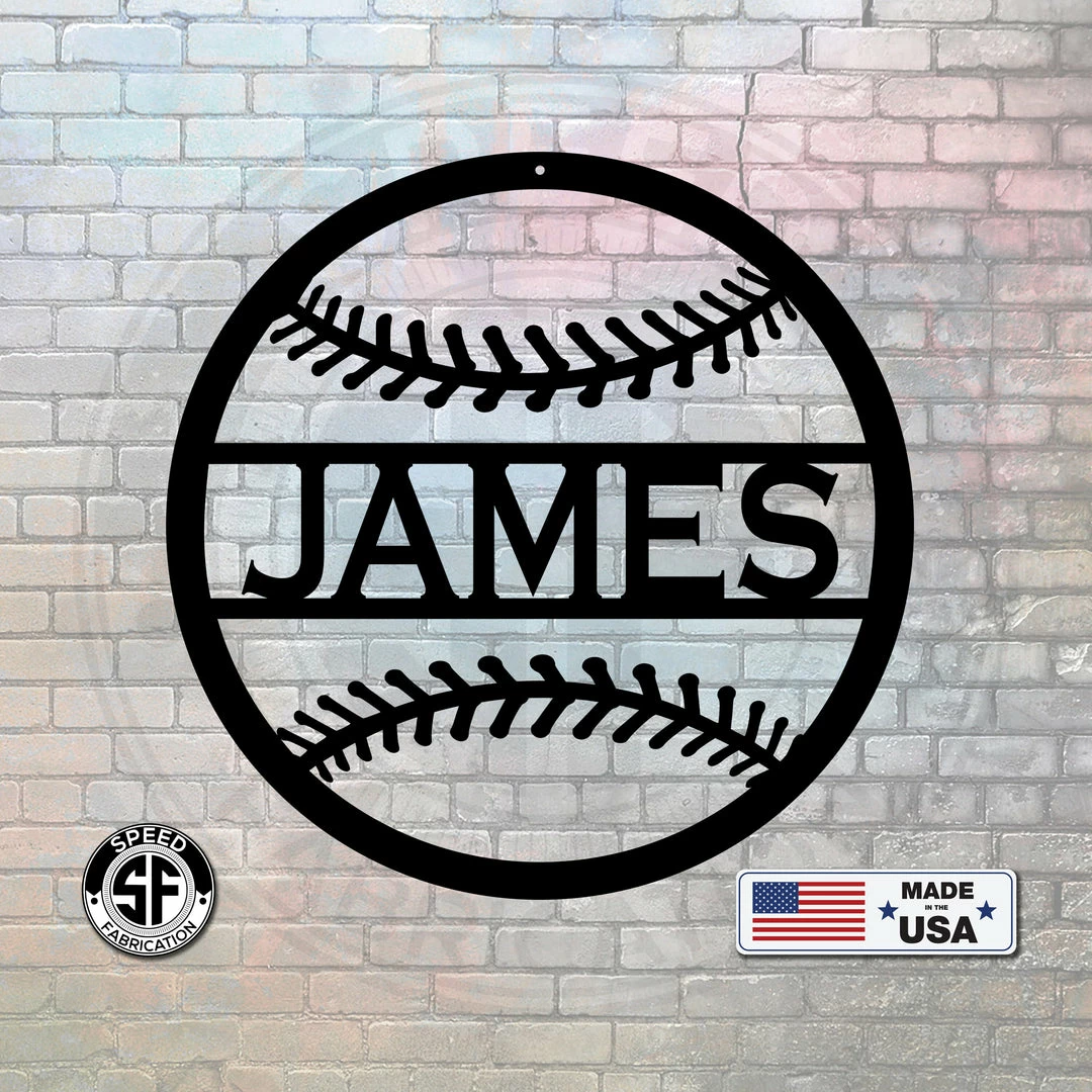 This Personalized Baseball Name Metal Sign is the perfect decor for any kids room. Also makes a great gift for the baseball lovers in your life. Our 12″ through 28″ signs are made from 16 gauge steel, 30″ through 36″ signs are made from 14 gauge steel with a powder coated finish for a long lasting sign indoors or outdoors.