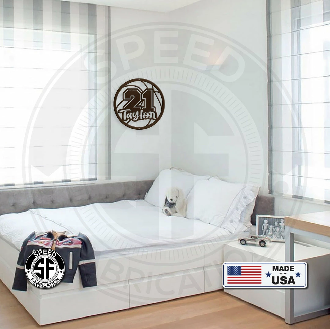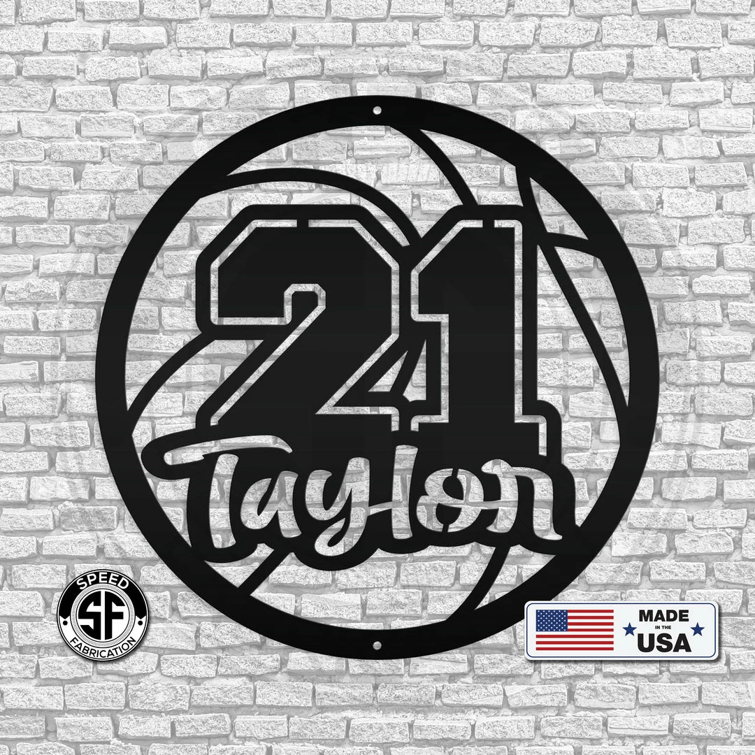 This Personalized Baskeball Name and Number Metal Sign is the perfect dรฉcor for any kids room. Also makes a great gift for the basketball player in your life. Our 12″ through 28″ signs are made from 16 gauge steel, 30″ through 36″ signs are made from 14 gauge steel with a powder coated finish for a long lasting sign indoors or outdoors.