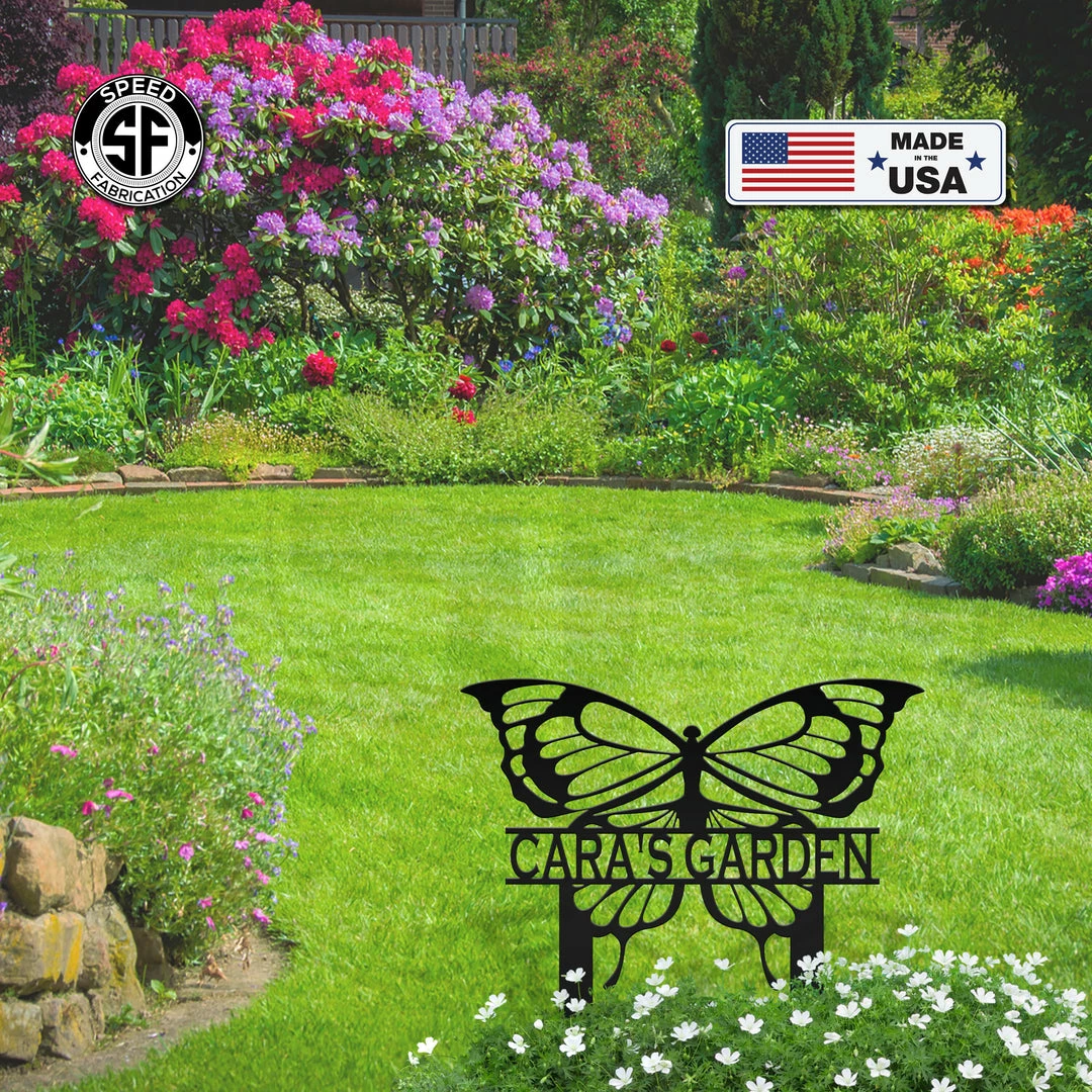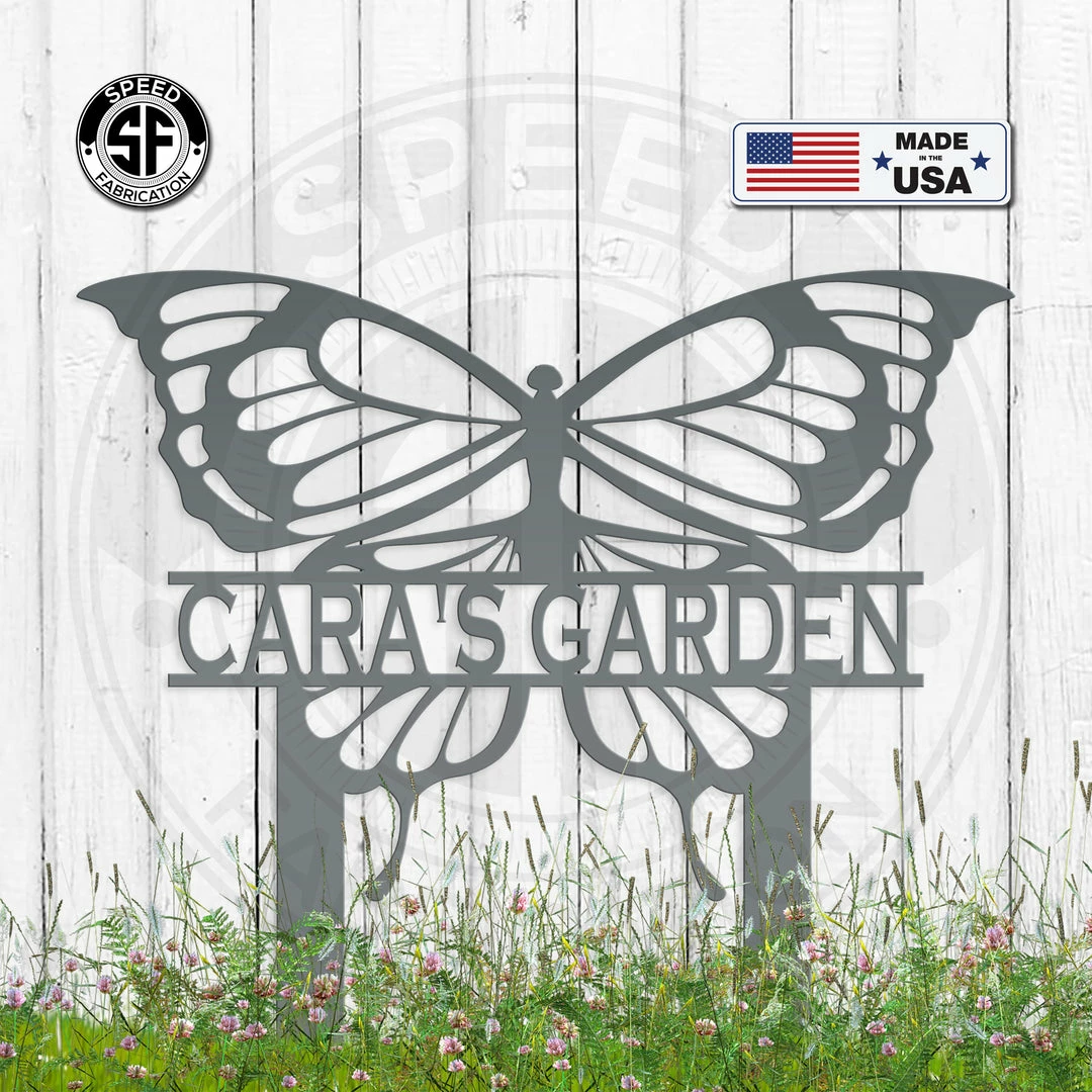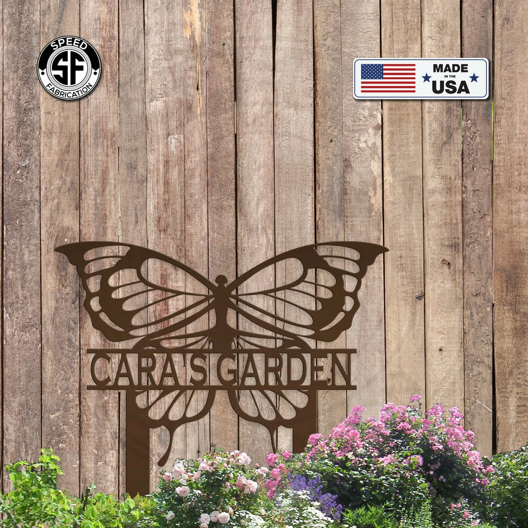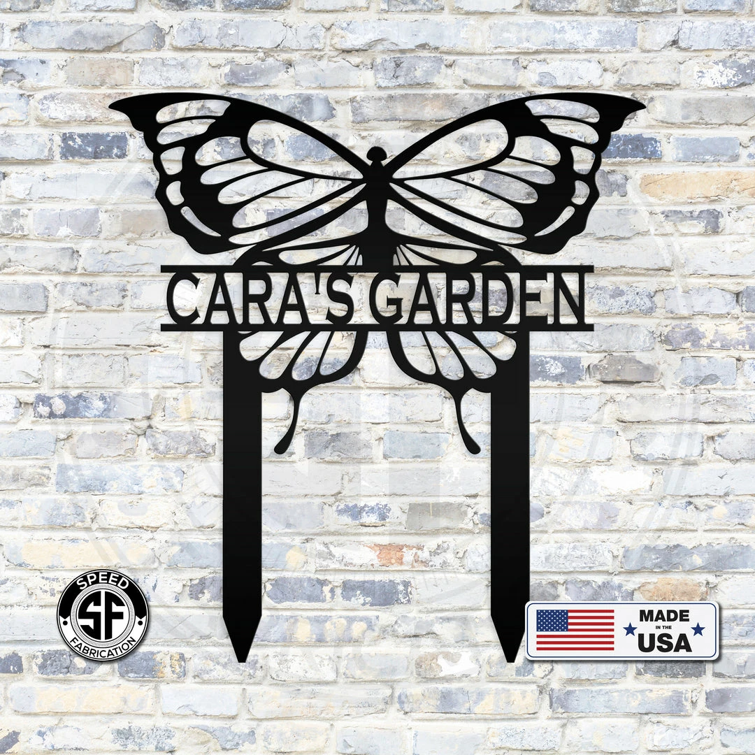 This Personalized Butterfly Metal Yard Stake Sign is the perfect sign for your home or garden. Sizing is for the height of the sign including the stakes. Our yard stake signs are made from 14 gauge steel with a powder coated finish for a long lasting sign indoors or outdoors.