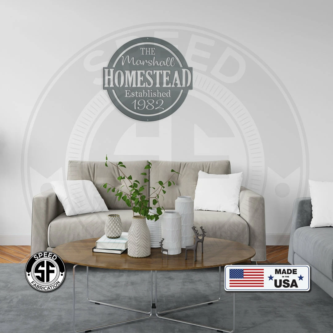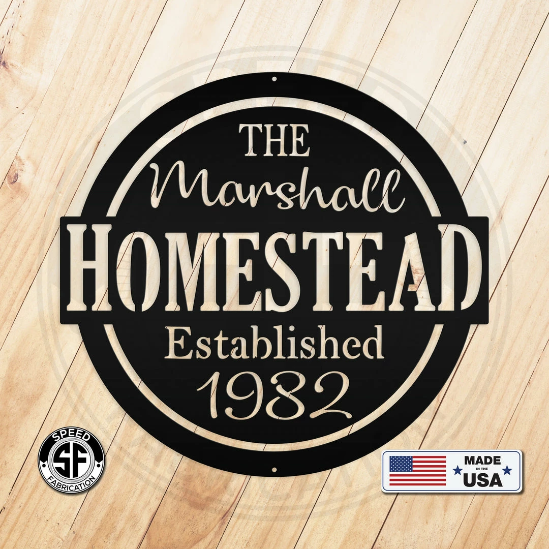 This Personalized Family Homestead with Established Date Metal Sign is the perfect sign for your home. Our 12″ through 28″ signs are made from 16 gauge steel, 30″ through 36″ signs are made from 14 gauge steel with a powder coated finish for a long lasting sign indoors or outdoors.