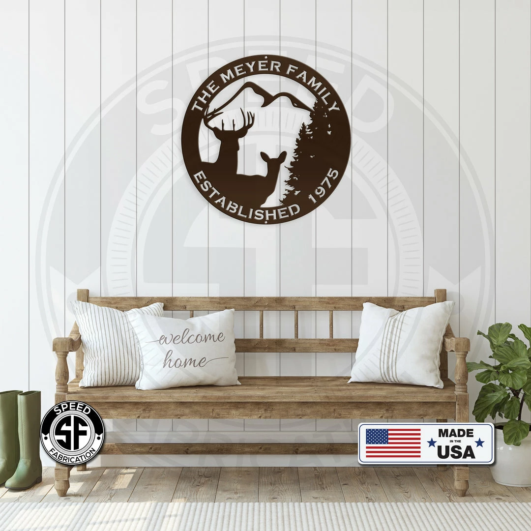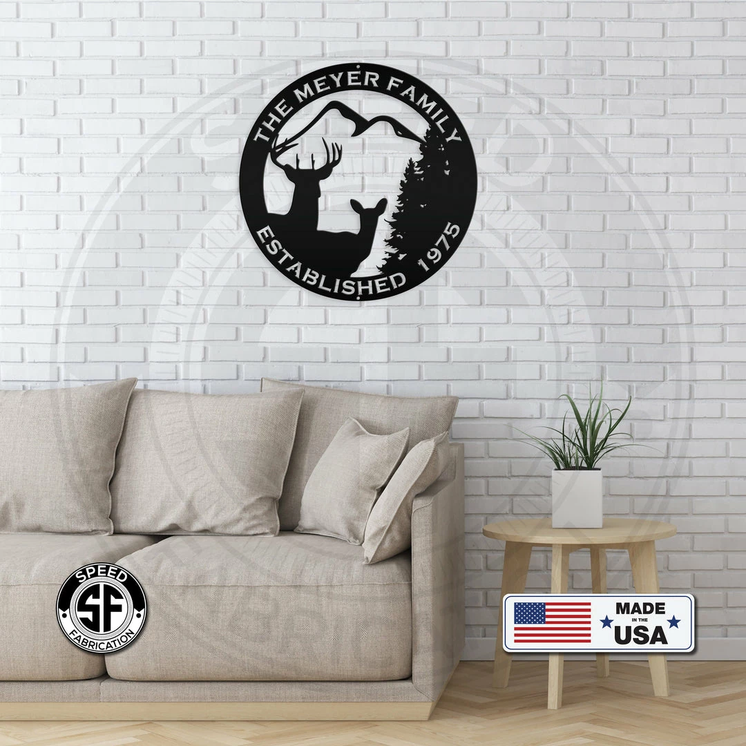 This Personalized Family Name Outdoor Deer Scene with Established Date Metal Sign is the perfect decor for any home. Also makes a great gift for the hunter in your life.
