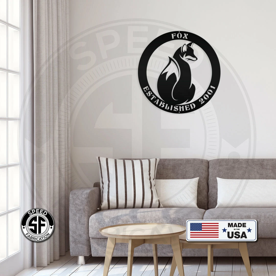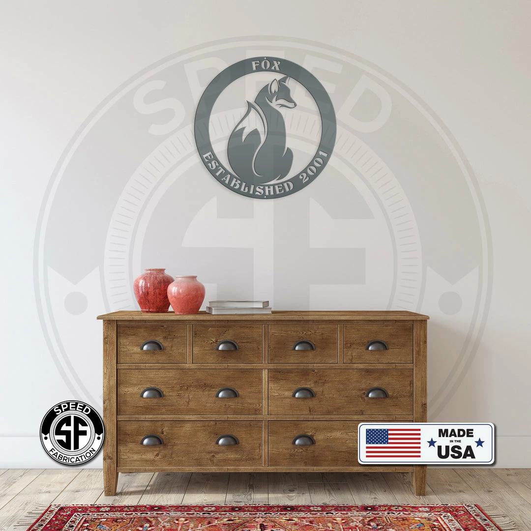This Personalized Family Name and Established Date Fox Metal Sign is the perfect decor for any home. Our 12″ through 28″ signs are made from 16 gauge steel, 30″ through 36″ signs are made from 14 gauge steel with a powdercoated finish for a long lasting sign indoors or outdoors.