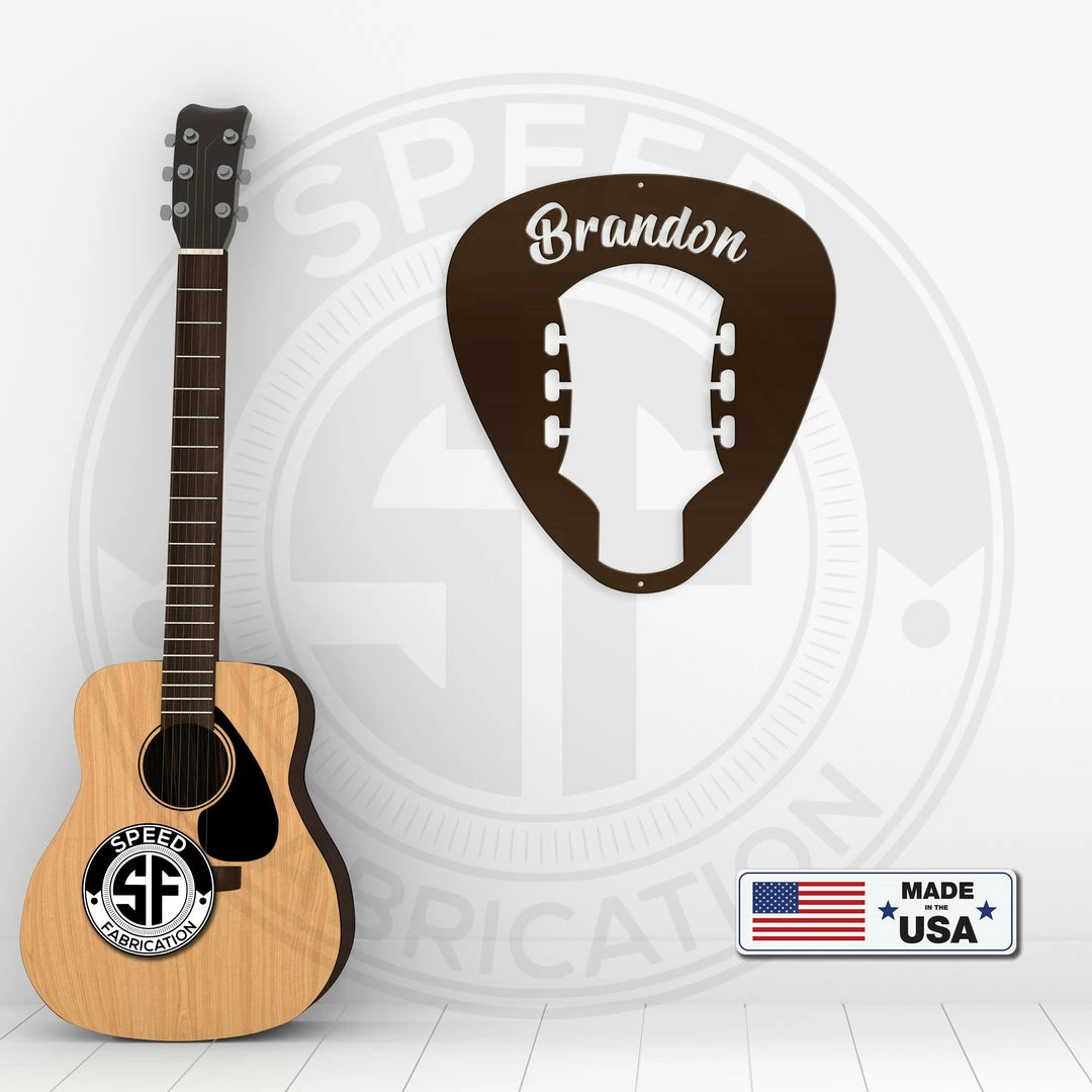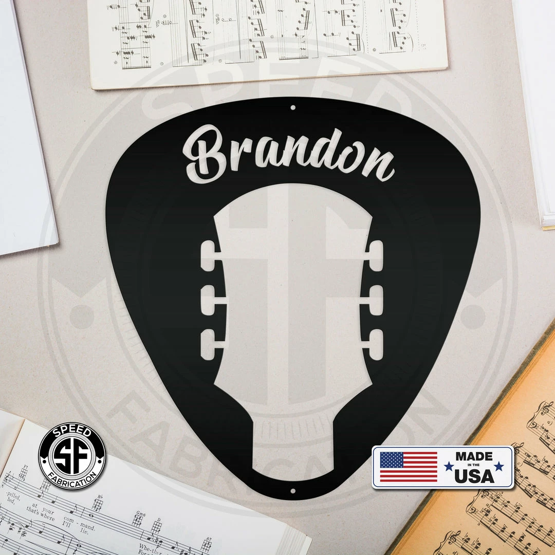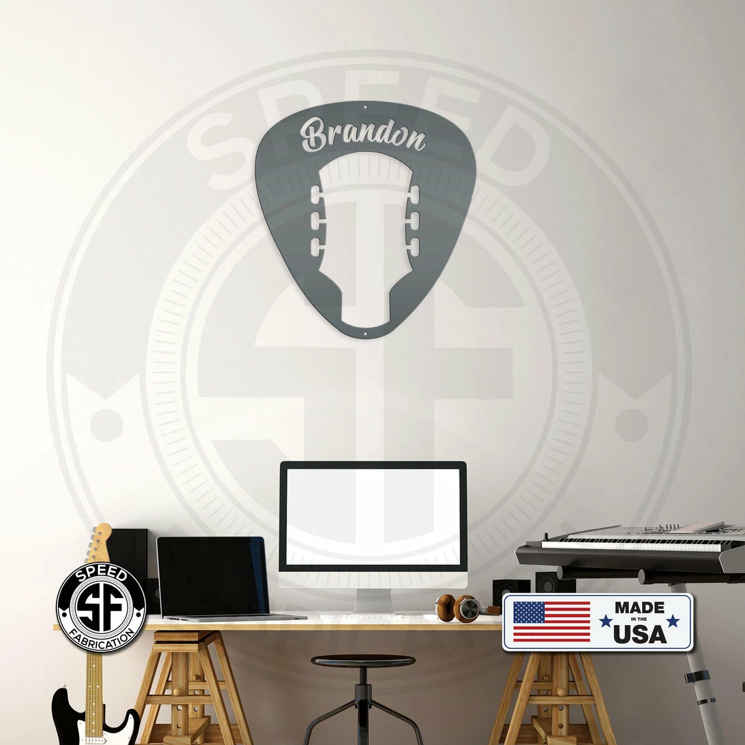 Our Personalized Guitar Pick Metal Sign is the perfect decor for any music room. Makes a great gift for the musician in your life. Our 12″ through 28″ signs are made from 16 gauge steel, 30″ through 36″ signs are made from 14 gauge steel with a powder coated finish for a long lasting sign indoors or outdoors.