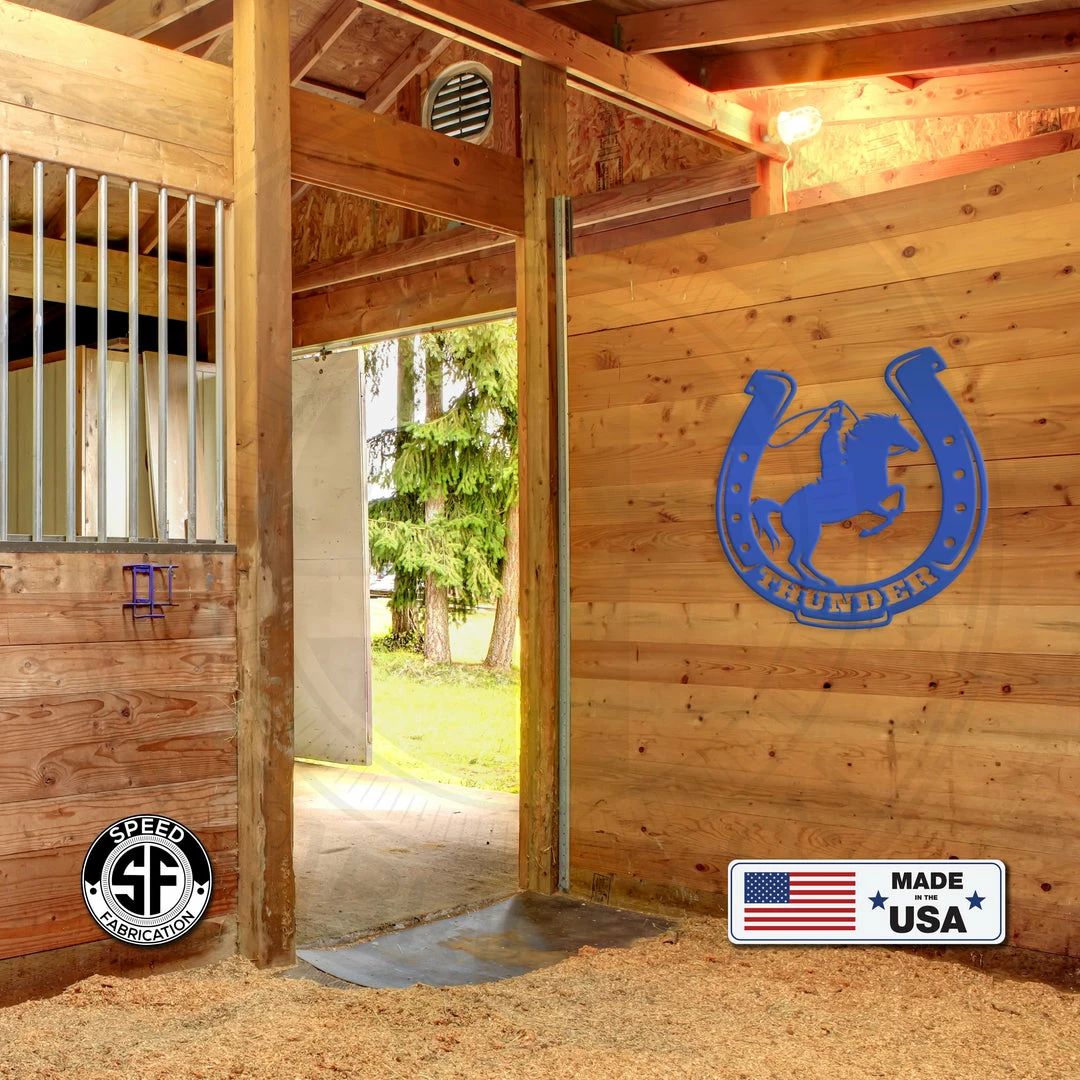Our Personalized Horse Name Metal Sign- Horse Stable Name Sign is the perfect sign for any horse lover, or to display your horse name on the stable or in the barn.