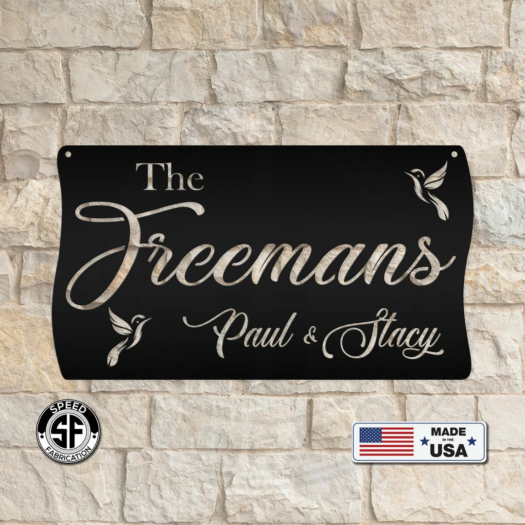 This Personalized Hummingbird Family Name Metal Sign is the perfect dรฉcor for any home. Also make a great housewarming gift. Our 12″ through 28″ signs are made from 16 gauge steel, 30″ through 36″ signs are made from 14 gauge steel with a powder coated finish for a long lasting sign indoors or outdoors.