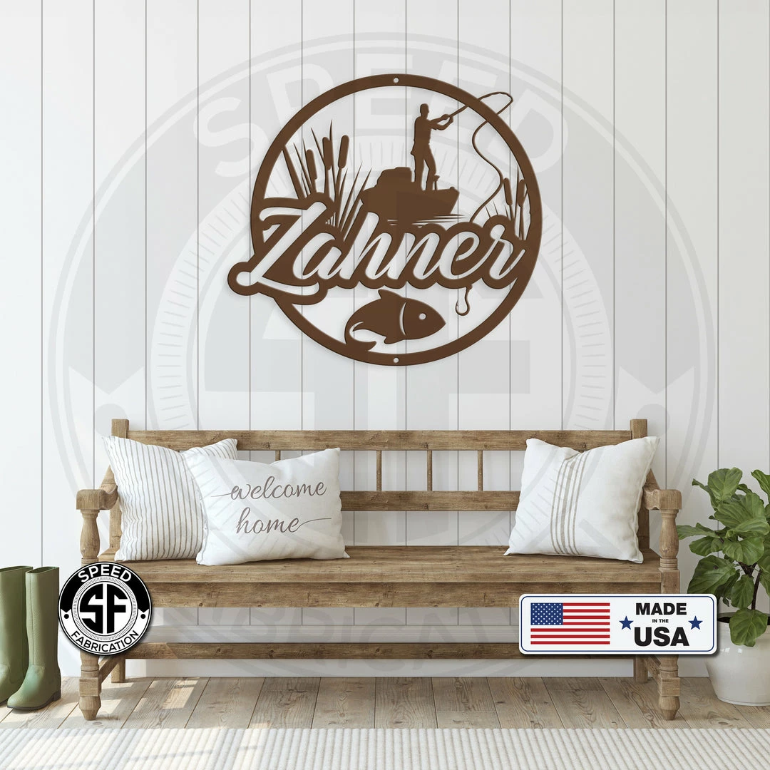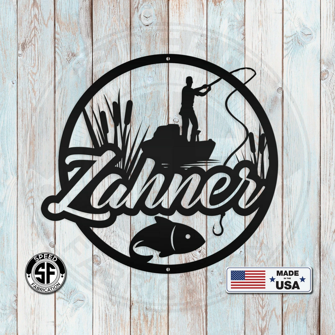This Personalized Lake Fishing Scene Metal Sign is the perfect dΓ©cor for any home. Makes a great gift for the fisherman in your life. Sizing for this sign is for the width, measuring from the left side edge of the name to the other edge of the circle. For longer names, both edges of the name might be outside of the circle. Our 12″ through 28″ signs are made from 16 gauge steel, 30″ through 36″ signs are made from 14 gauge steel with a powder coated finish for a long lasting sign indoors or outdoors.
