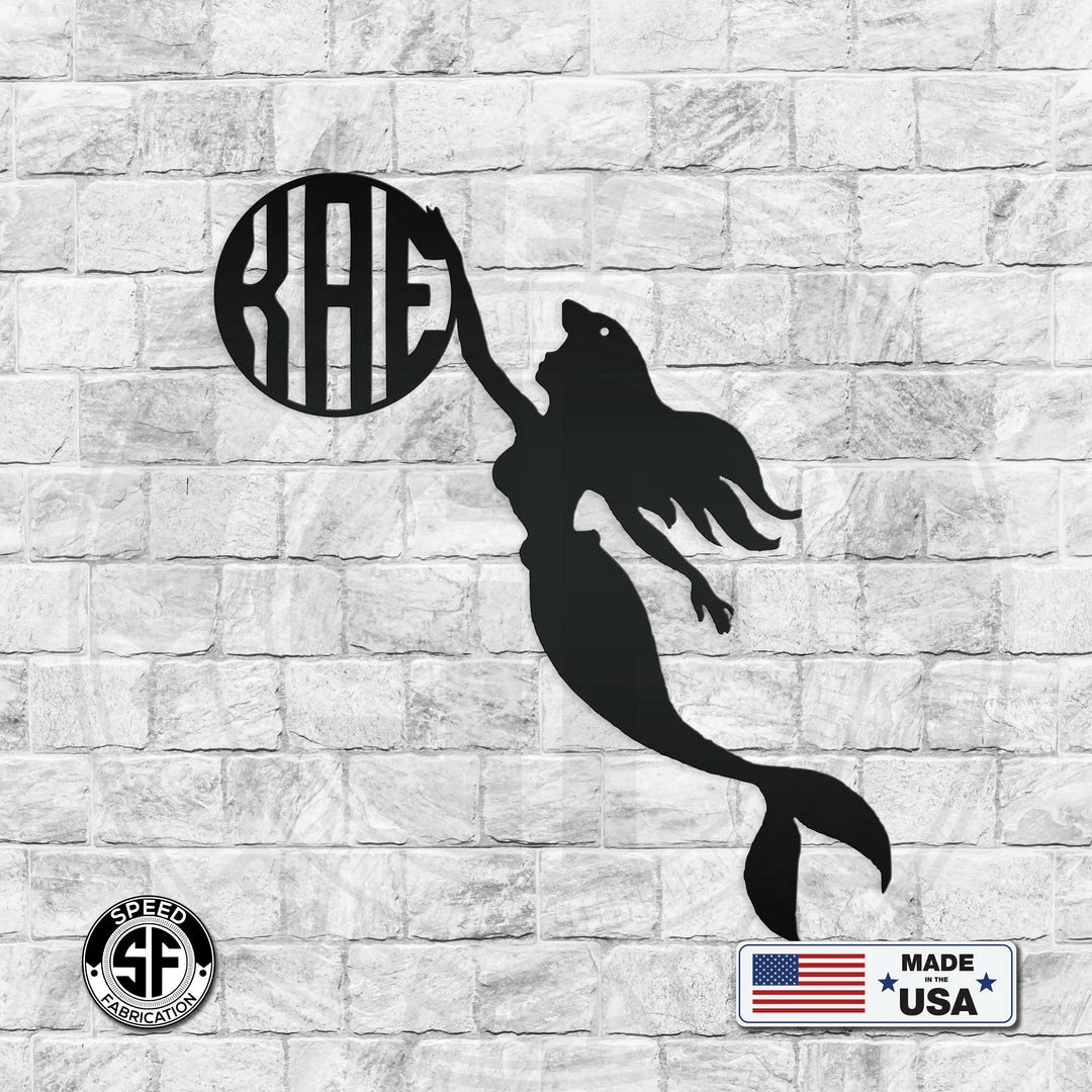 This Personalized Mermaid Monogram Metal Sign is the perfect bedroom decor for any mermaid loving little girl. Our 12″ through 28″ signs are made from 16 gauge steel, 30″ through 36″ signs are made from 14 gauge steel with a powder coated finish for a long lasting sign indoors or outdoors. Sizing is for the height of the sign.